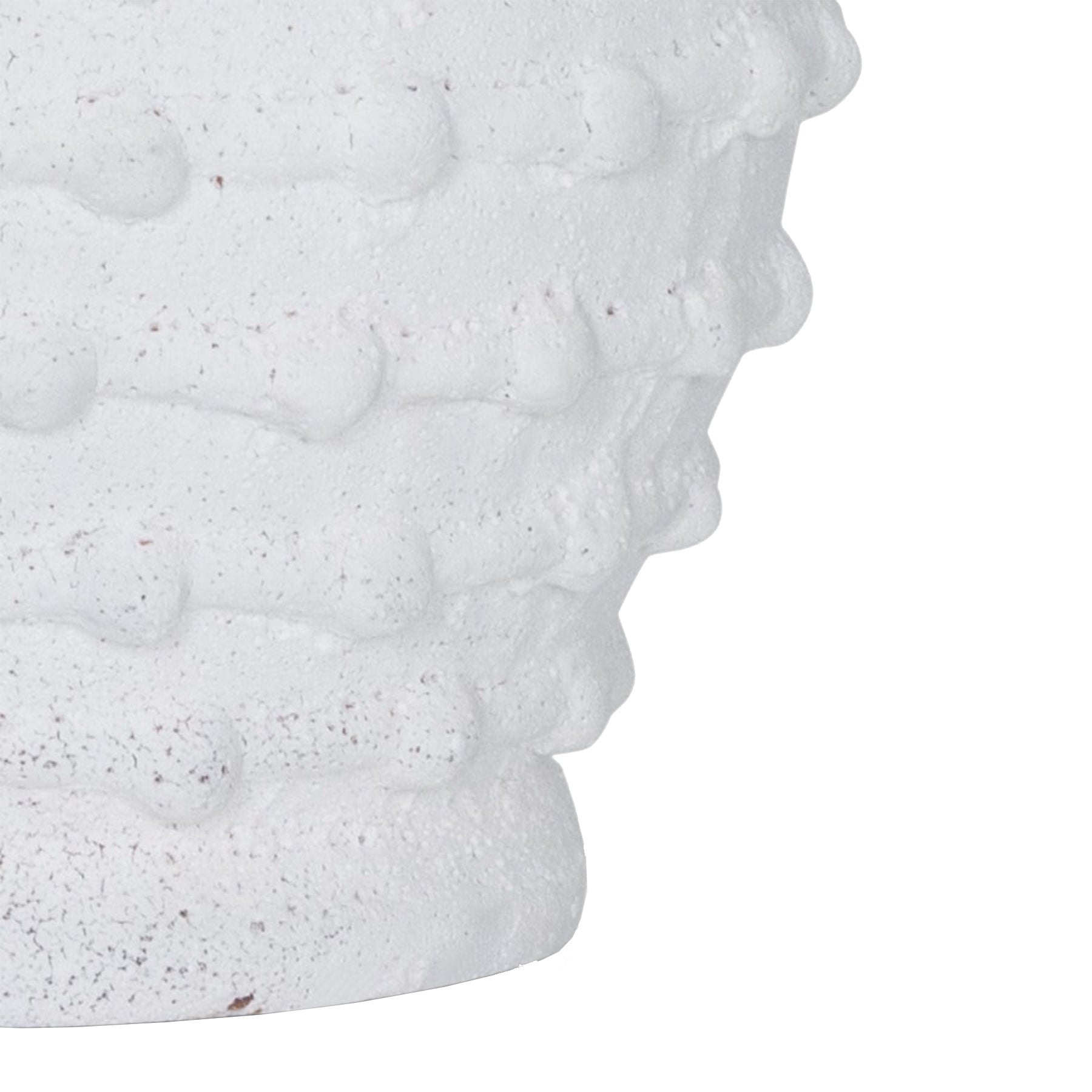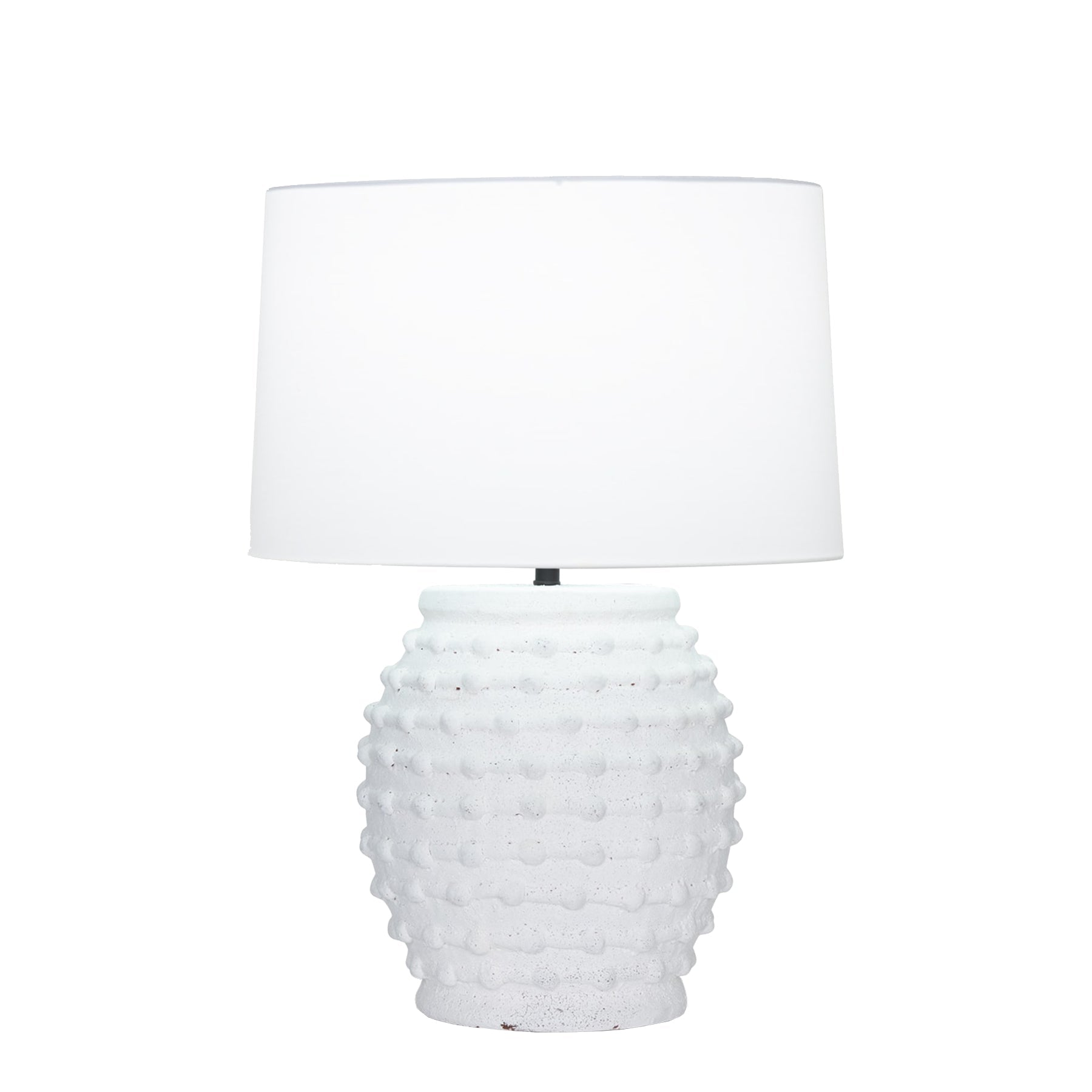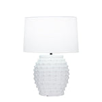 Perfect for drawing together various colors and textures within your decor, the bobbled detailing on this white ceramic table lamp adds striking depth and interest to its clean design. Topped with a clean white cotton shade, this versatile light source will bring a contemporary touch to bedside tables, end tables and console tables.