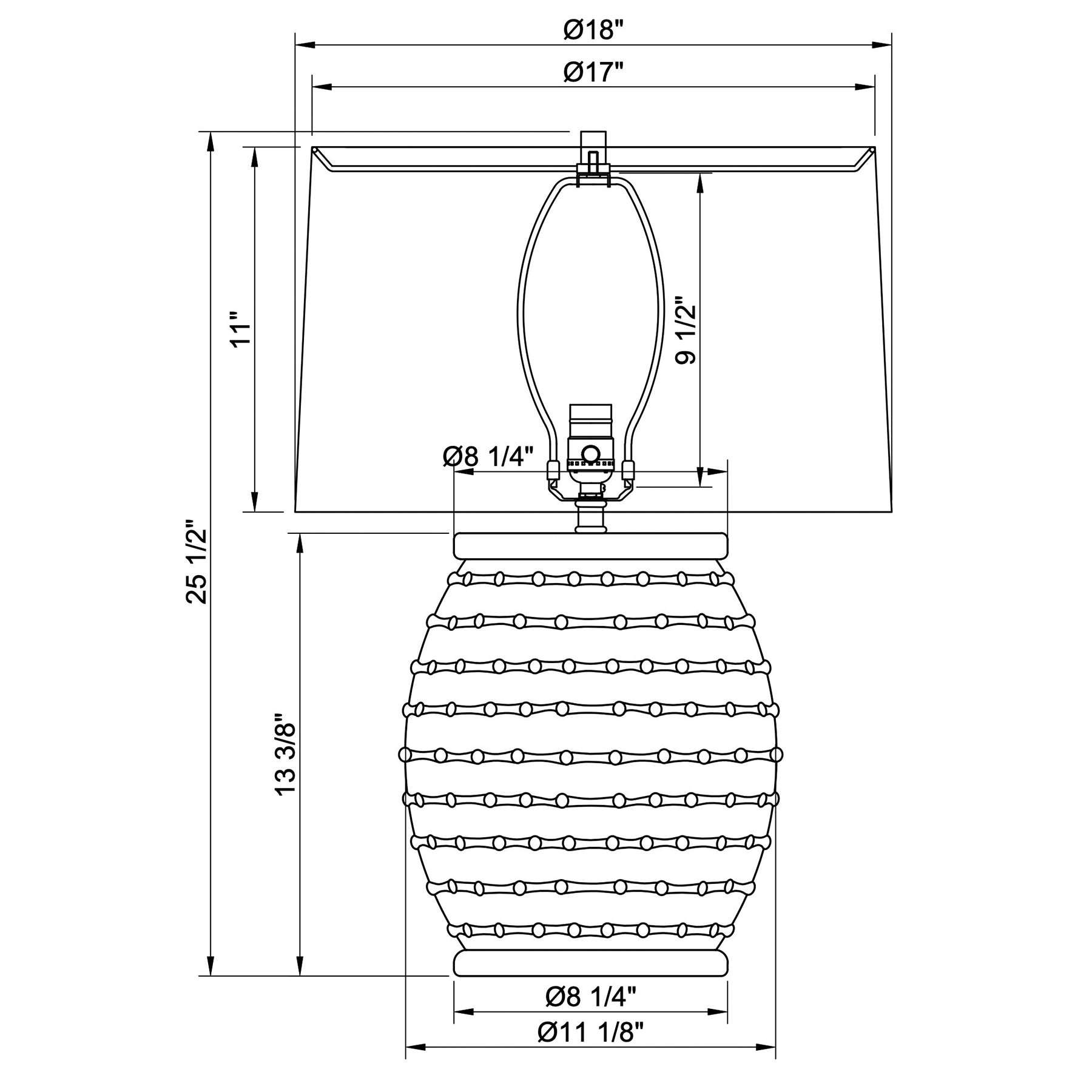 Dimensions: 18.00" W, 25.5″H; Shade: 17″ø(t) x 18″ø(b) x 11″H