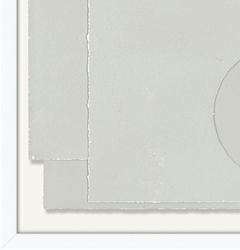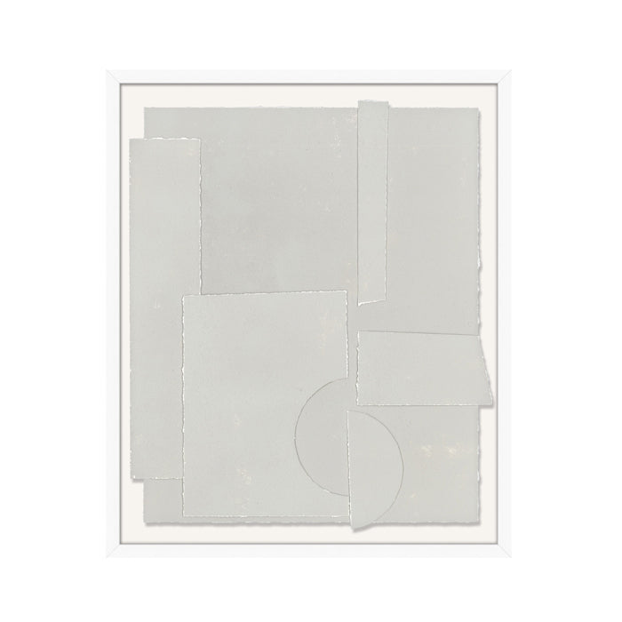 Various hand textured and torn pieces of painted watercolour paper, layered and floated on a mat.