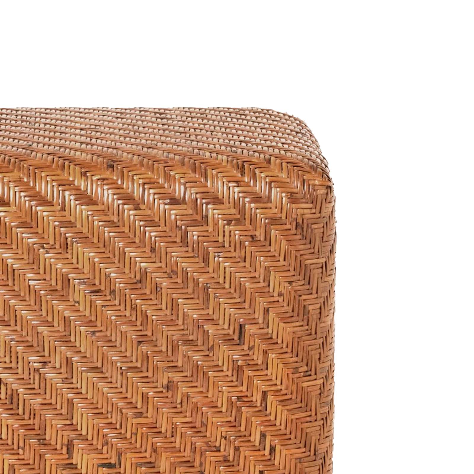 This clean-lined stool is not as straightforward as it may seem: its flat-weave rattan chevron pattern is cleverly turned at an angle, creating an intriguing sense of upward movement. The natural rattan's colour variations add depth and complexity.