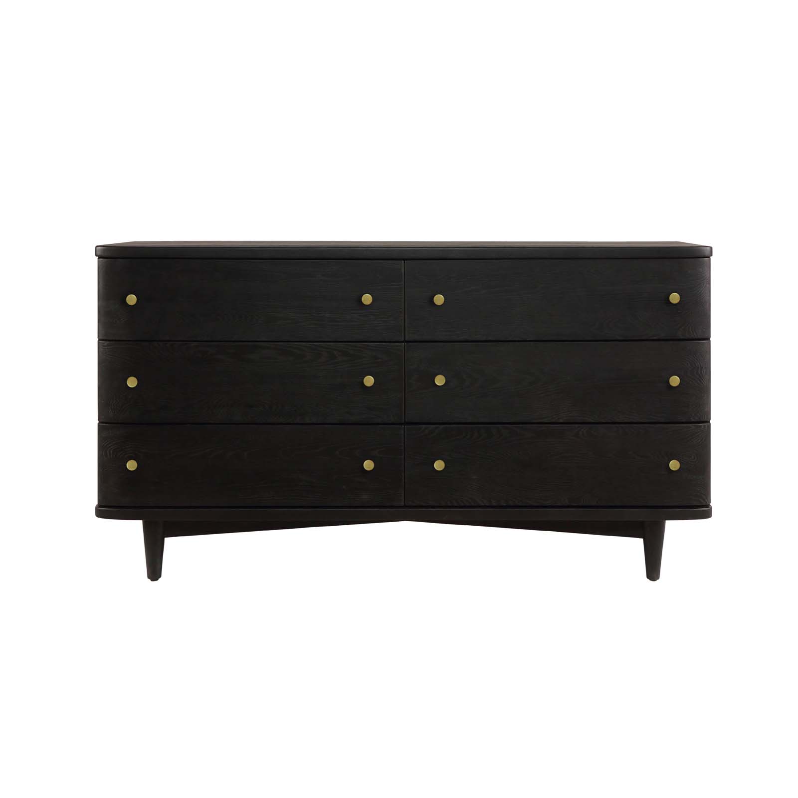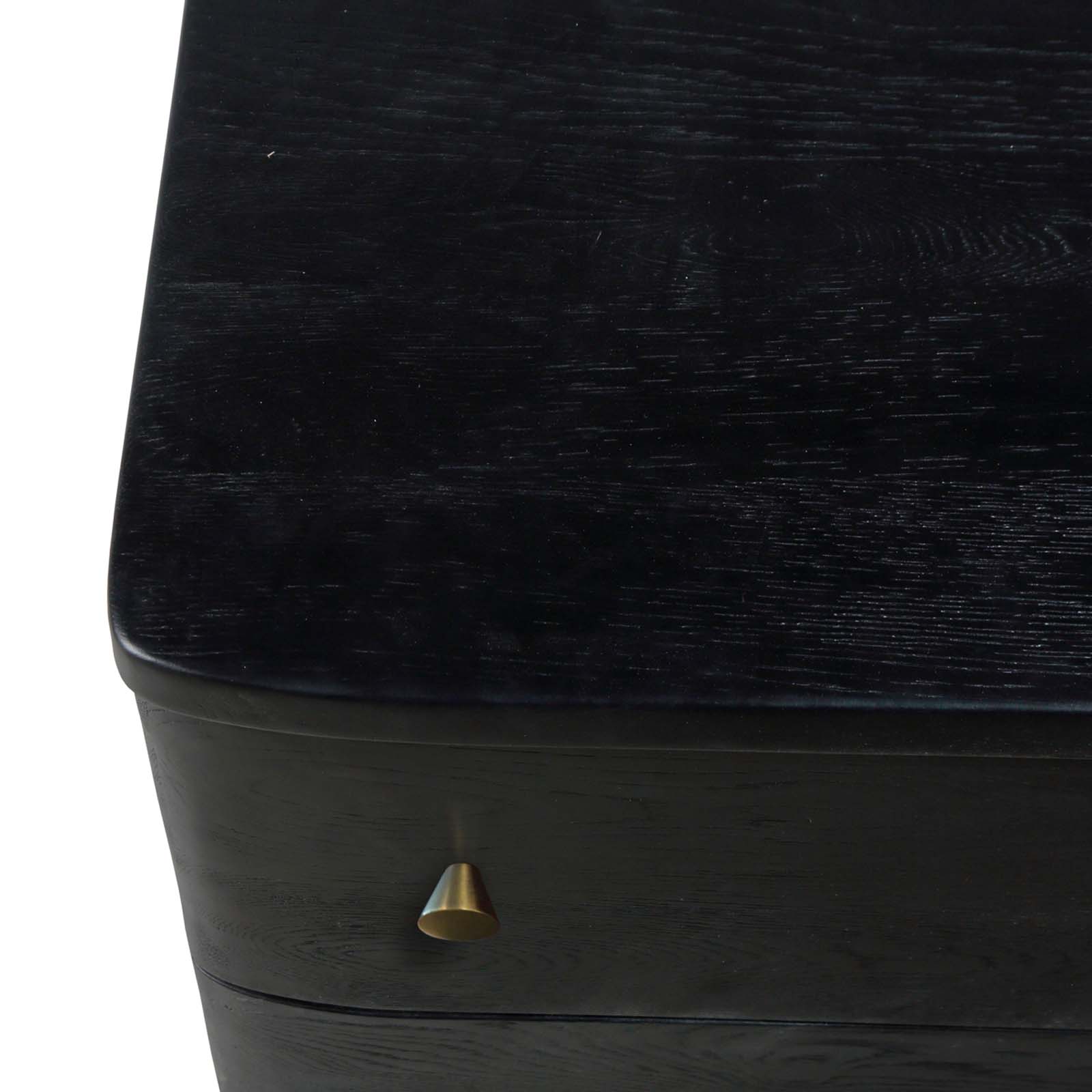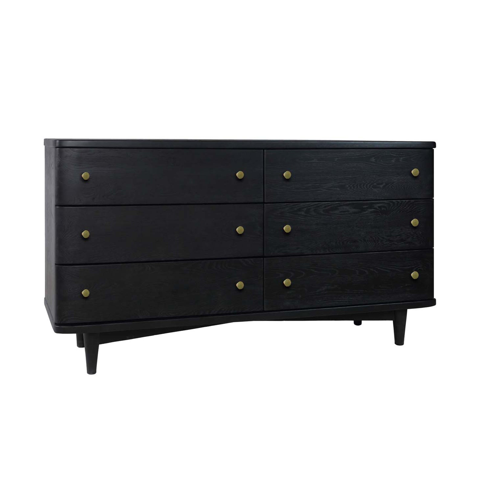 The Veda dresser is a dramatic addition to any master bedroom. This FSC certified white Oak dresser is sculptured with soft edges. The textured surface is finished in a water-based charcoal finish. It features 6 drawers that open smoothly to reveal ample space for storage.