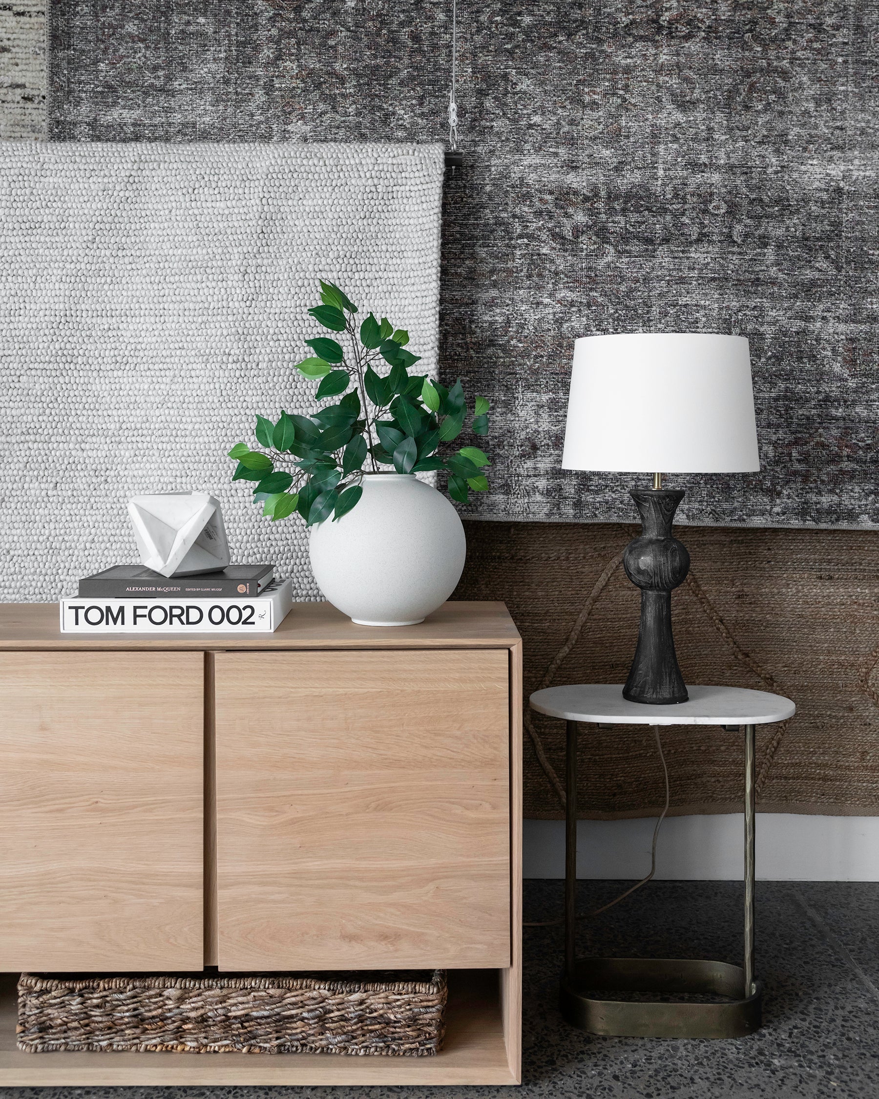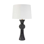 Distinctive finishing along with its tapered silhouette make the Vince Table Lamp a perfect match for modern living. Its slender body has been lathed from solid oak and hand-finished in a blackened cerused finish. Complimented by its crisp white shade and soft natural brass hardware this lamp is bold and modern.