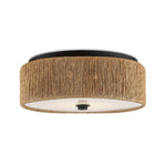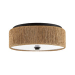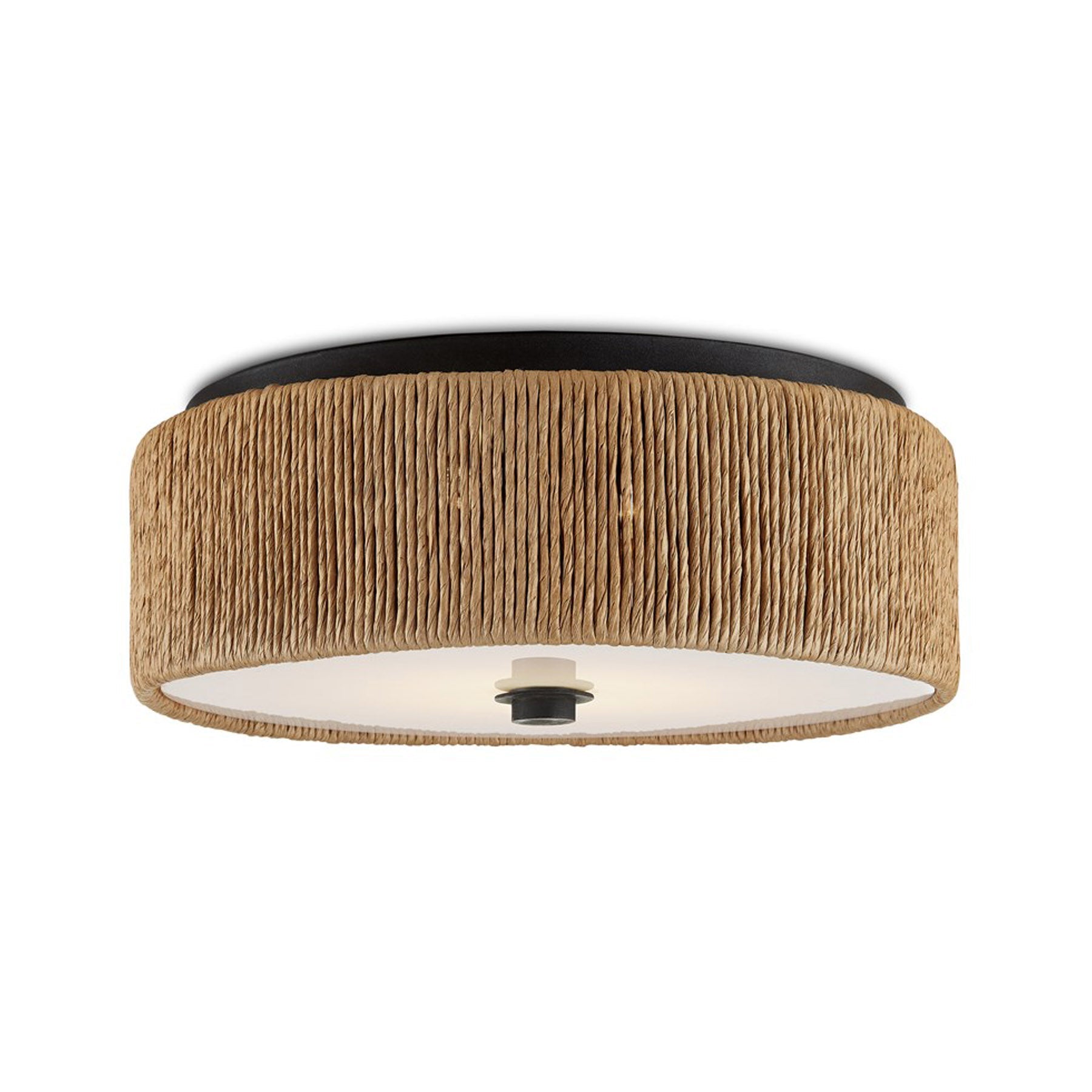 The exterior of the shade of the Tywin Flushmount is wrapped in recycled paper that has been twisted like braided hair. The paper is a natural tone that blends with the ivory diffuser. The wrought iron ceiling mount and finial nicely contrast the crispness of this design. The Tywin is fitted with integrated LED technology.