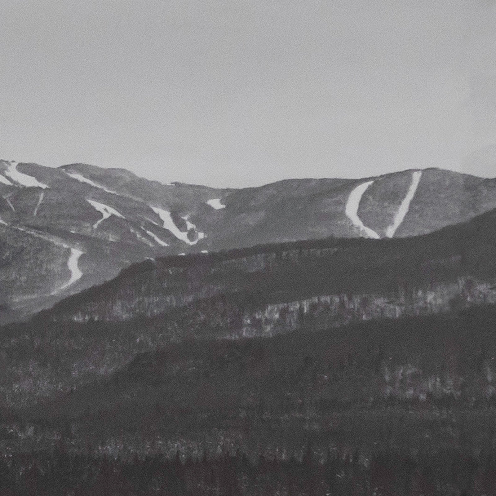 An exclusive Leclair Decor photo of Mont Tremblant's Northside framed in a medium-tone wood.