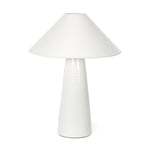 The Koda Ceramic Table Lamp is accented with horizontal throwing lines that add handcrafted texture and depth. Topped with a distinctive triangular coolie shade, this lamp introduces a fresh play on proportion.