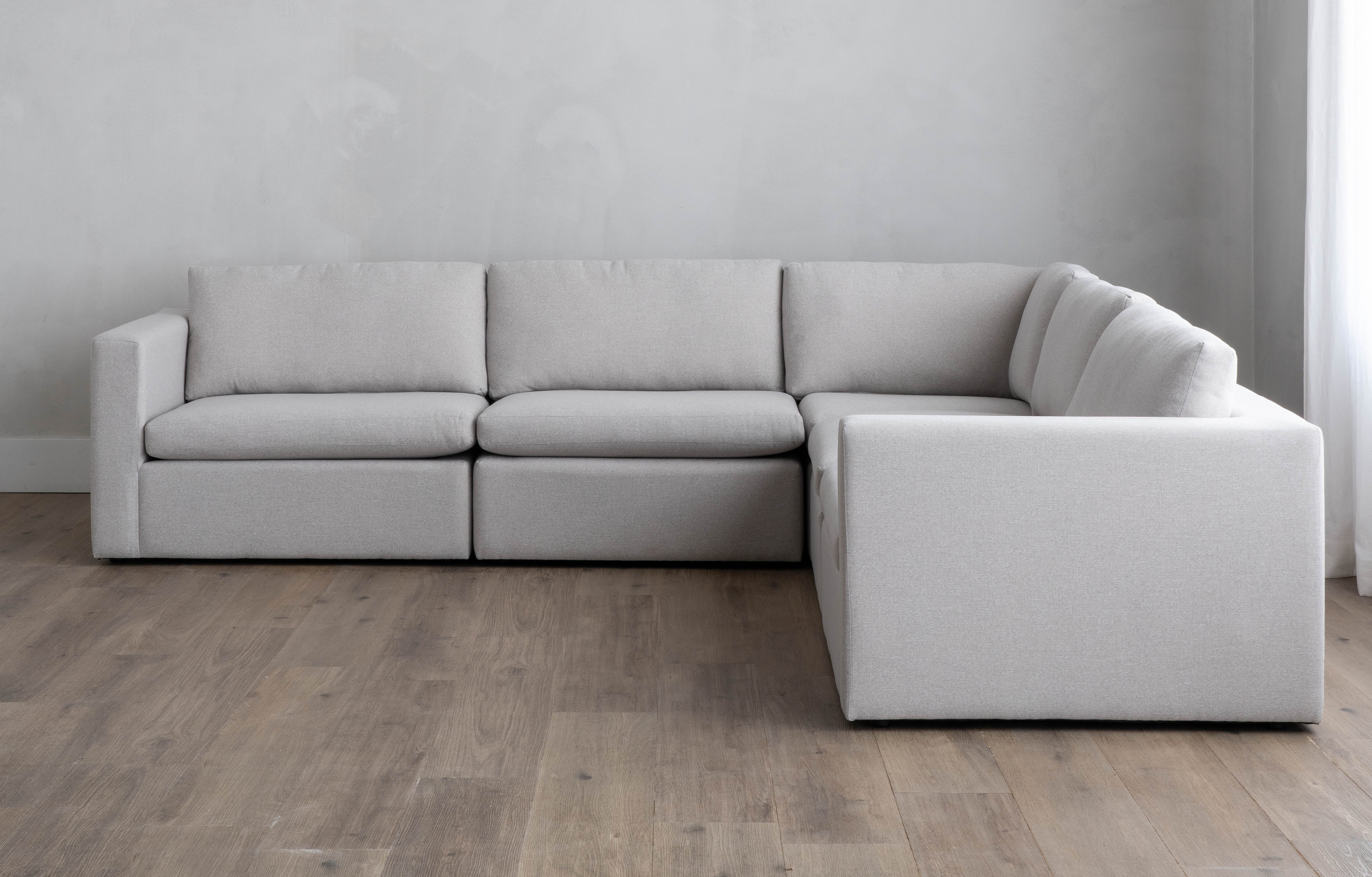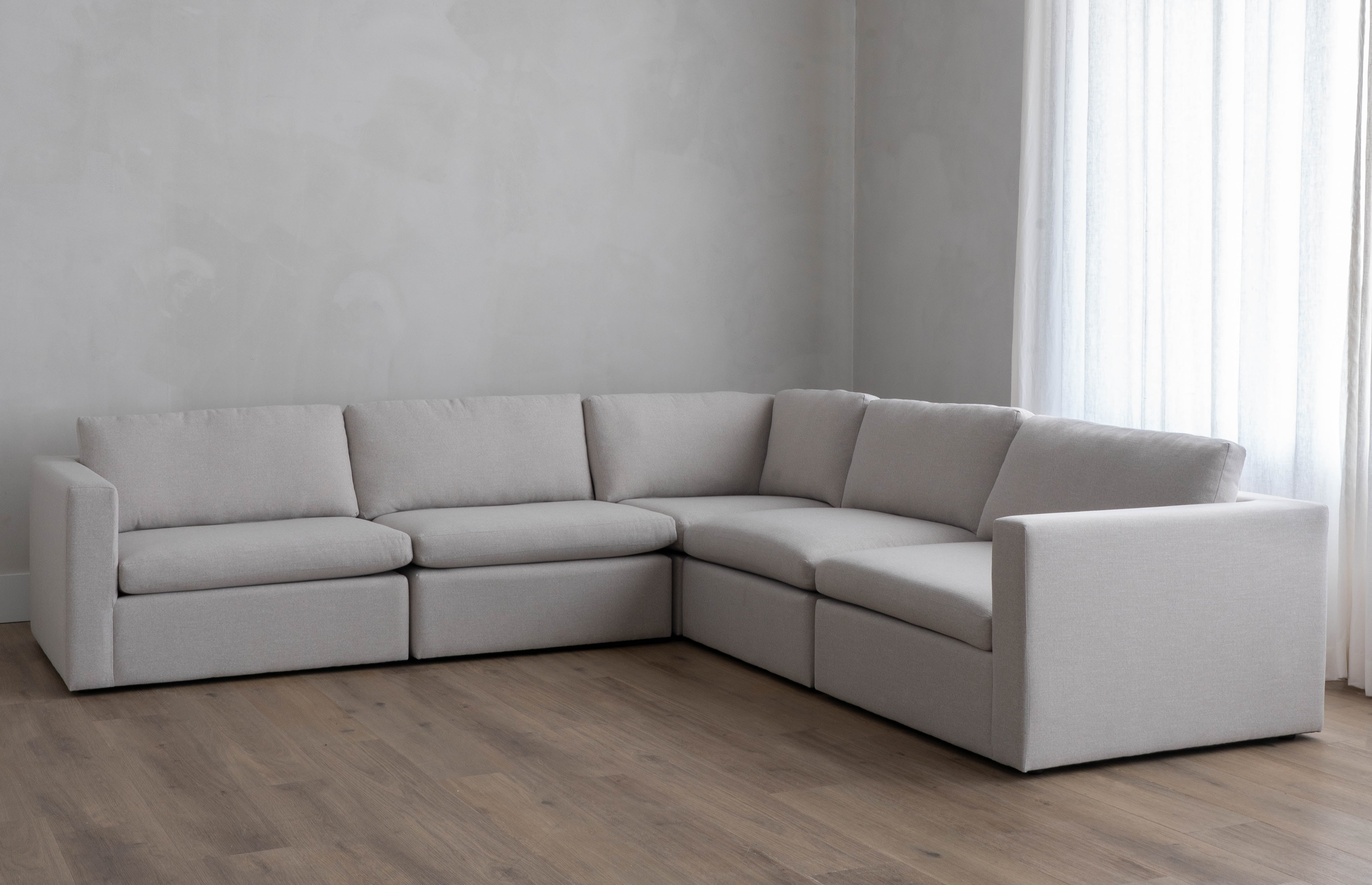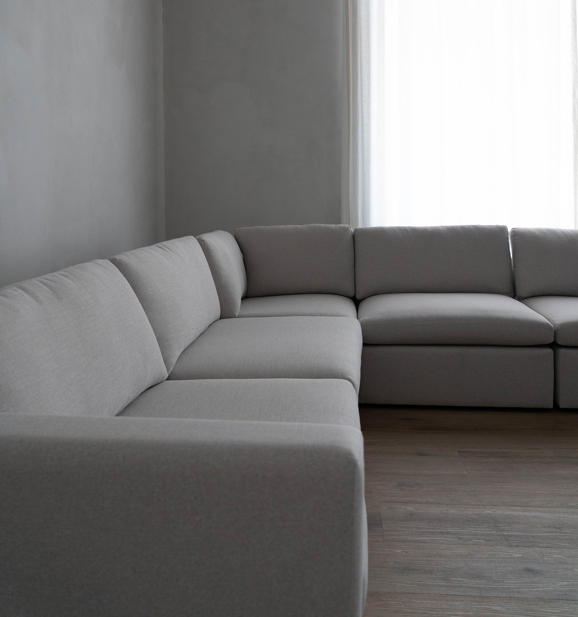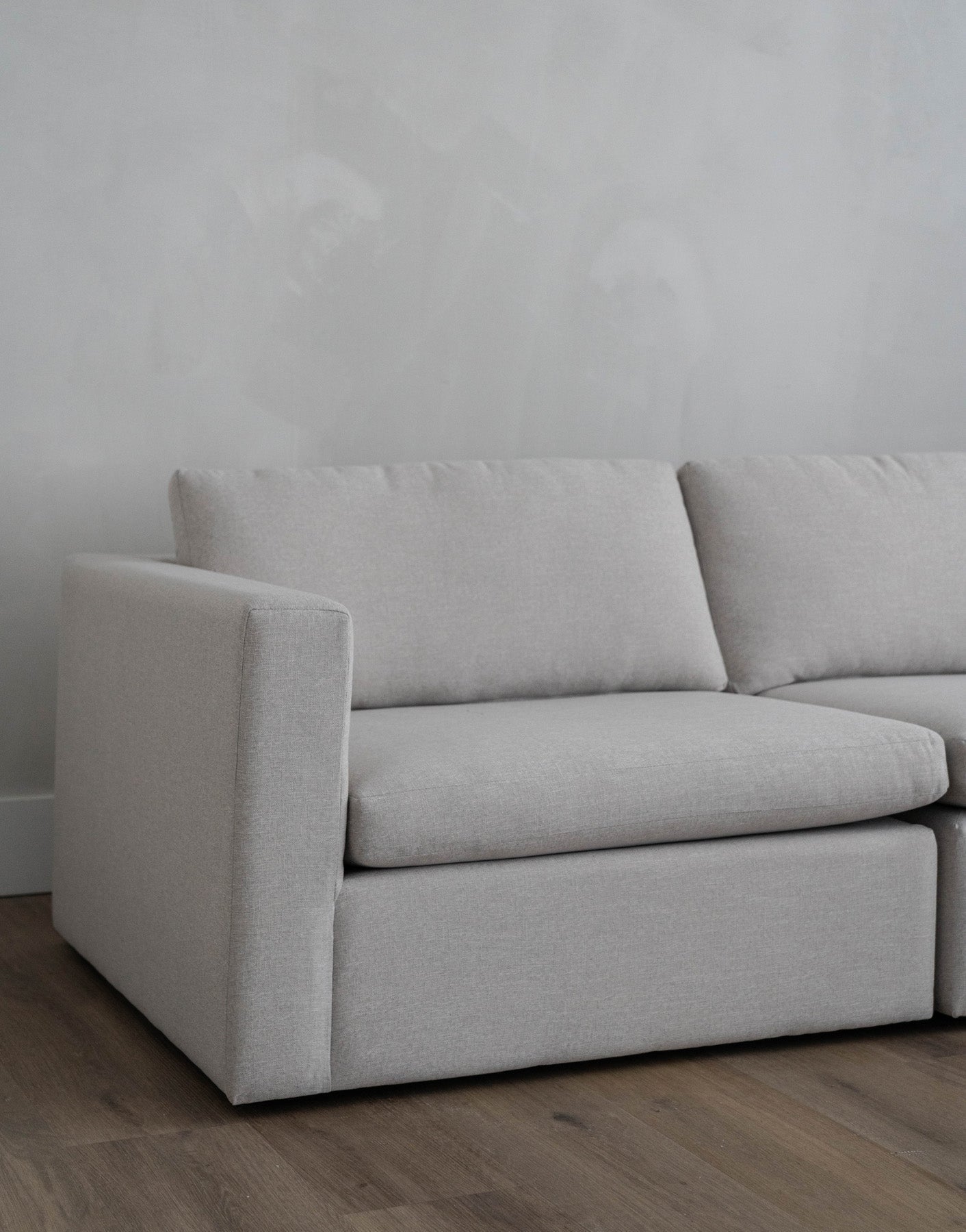 Our new sectional is a fantastic addition to your living room. Simple and easy to configure, the modular design allows you to create the exact configuration that fits your unique space. Performance fabric that is spill and stain repellent as well as antimicrobial makes this perfect for families with kids (and pets!)
