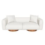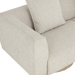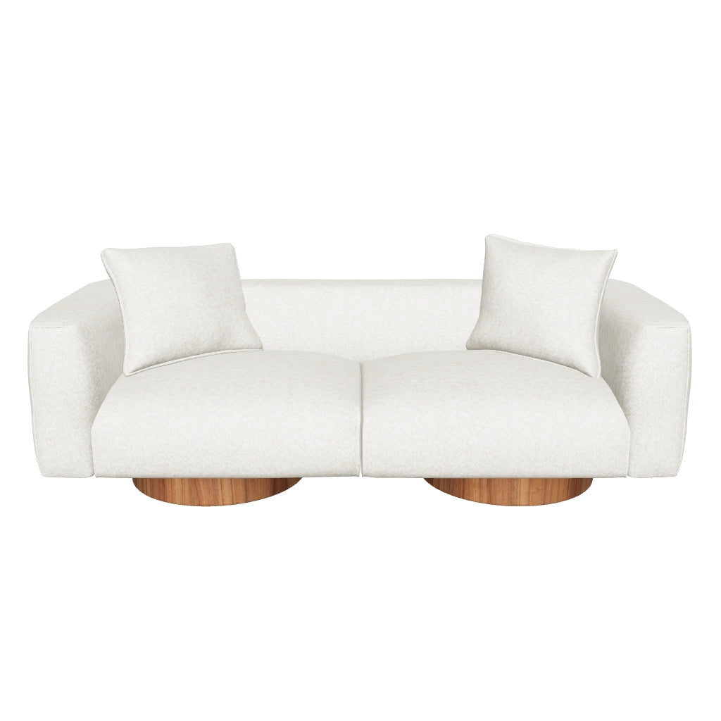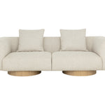 The Norman Sofa creates a handsome melody between sleek modern design and smooth contemporary finishes. Masterfully upholstered in santa cruz oatmeal fabric and with two light oak veneer rounded bases, this sofa is a stunning iteration of balanced shapes and timeless style.