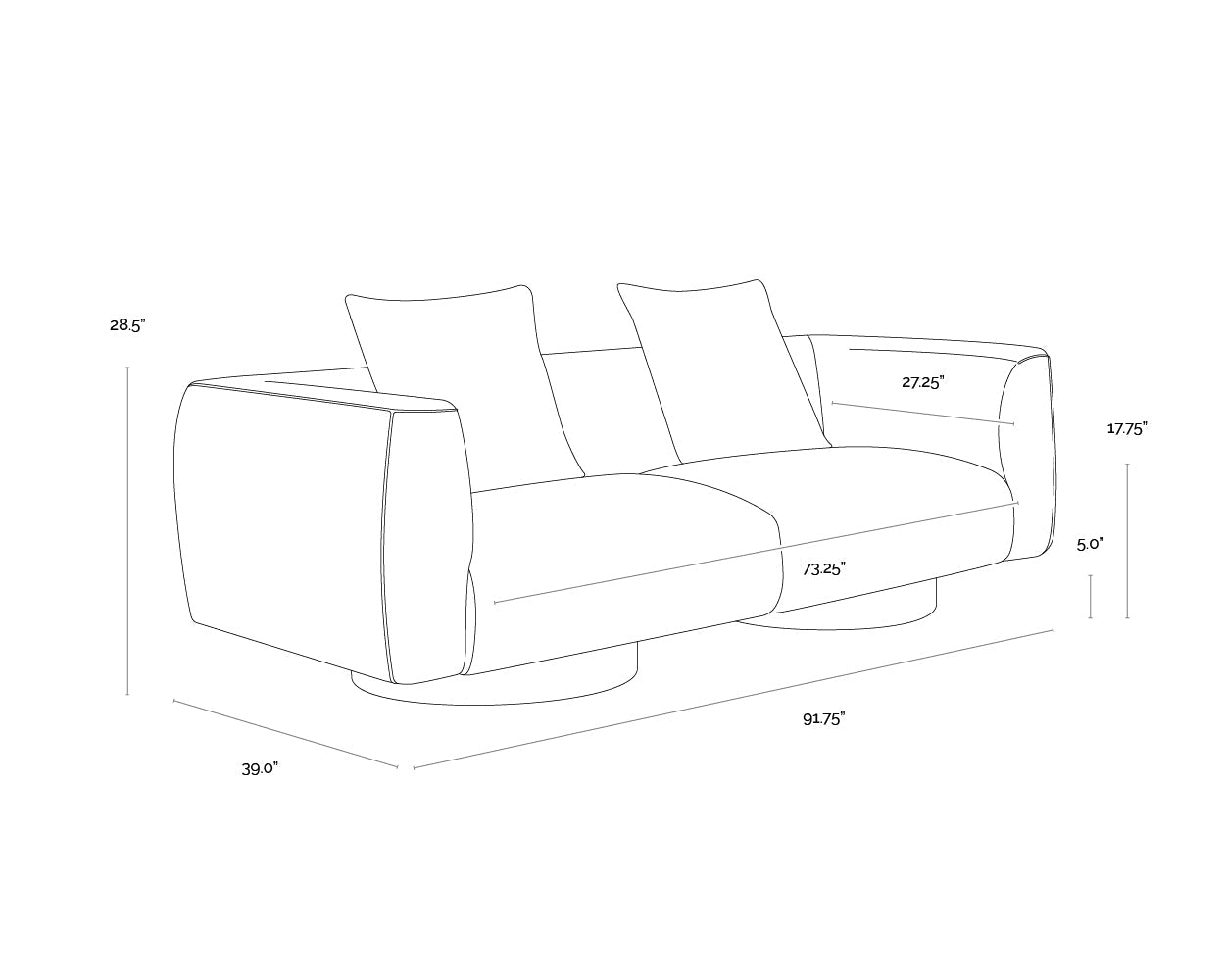 Overall Dimensions: 91.75W x 39.00D x 28.50H in