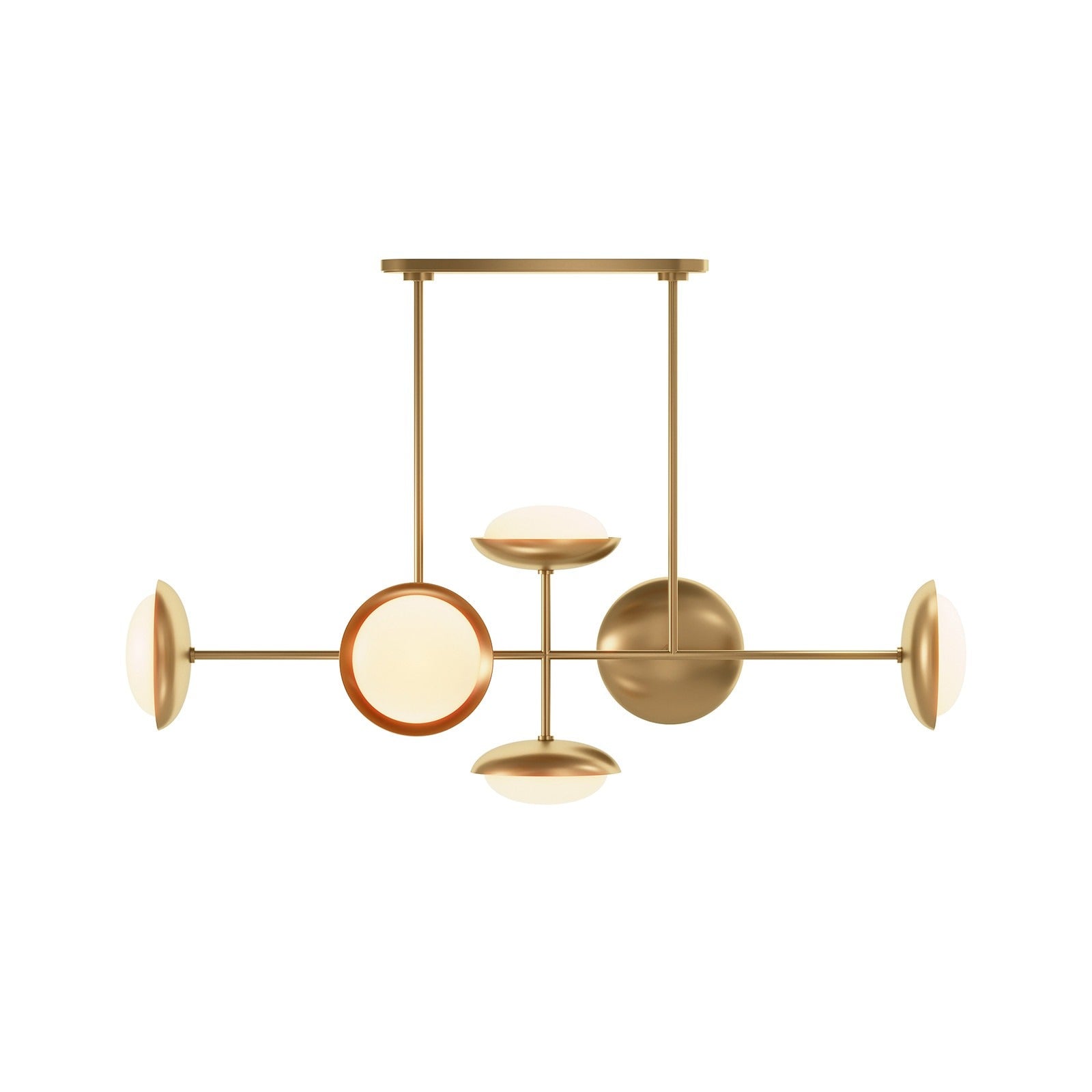 The James Chandelier finds harmony between form and function, simplicity and detail. Cushion-shaped opal glass diffusers nest within natural brass domes, creating a warm, sculptural glow. Its graceful composition and strong geometry evoke mid-century elegance while remaining distinctly contemporary—a refined centerpiece that commands attention without overpowering a space. Lighting that feels effortless—crafted with Detroit’s spirit of precision, artistry, and enduring design.