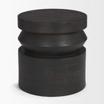 The Rashama is a contemporary accent table crafted from smooth espresso-finished wood, featuring a bold silhouette with a stacked geometric design.