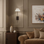 The Roumi wall sconce pairs graceful lines with rich materials for instant sophistication. A dark antique bronze body and angular backplate add sculptural edge, while the pleated ivory linen shade casts a soft, flattering glow. Blending transitional elegance with everyday versatility, it’s a chic, polished lighting accent for any stylish space.