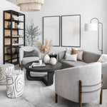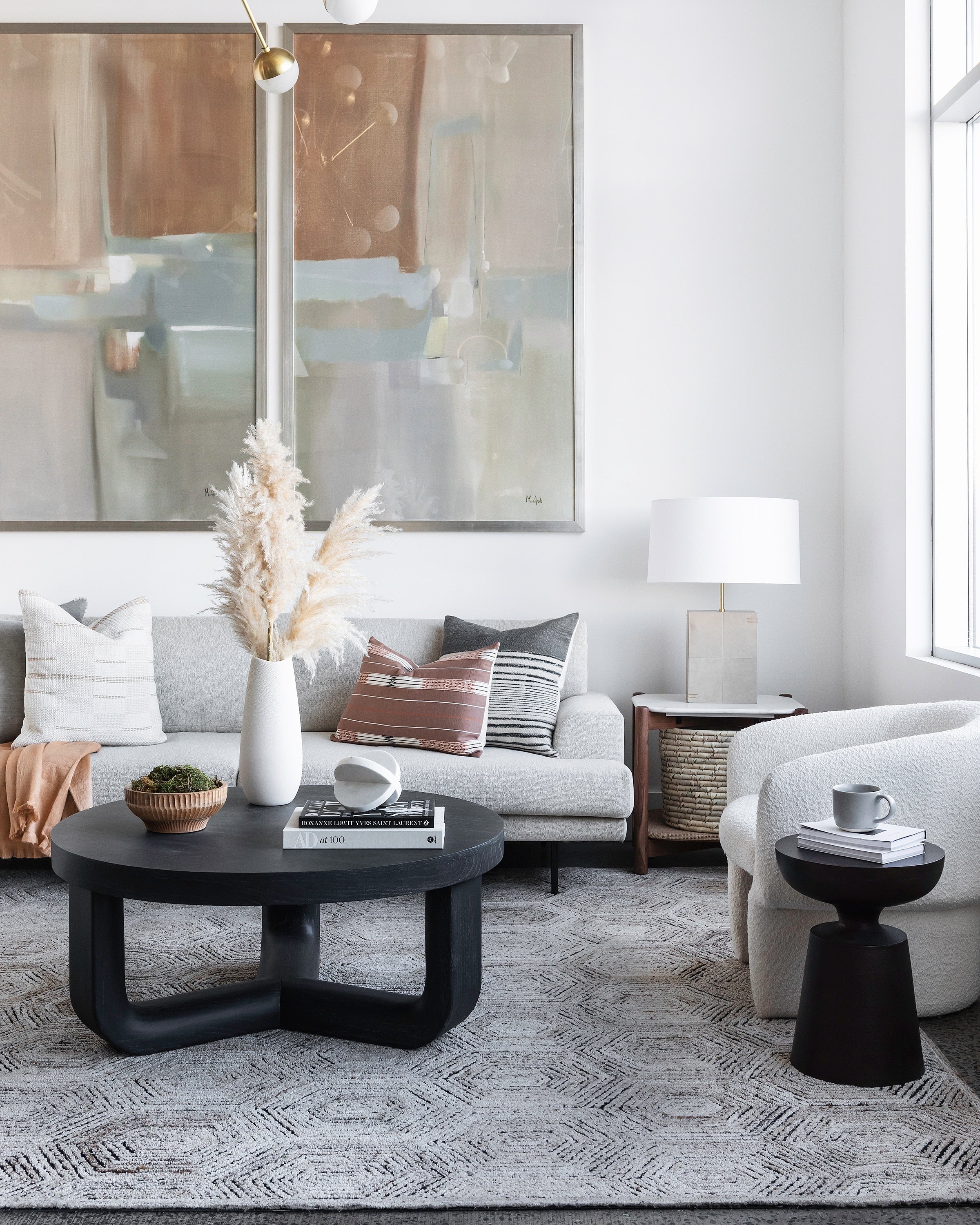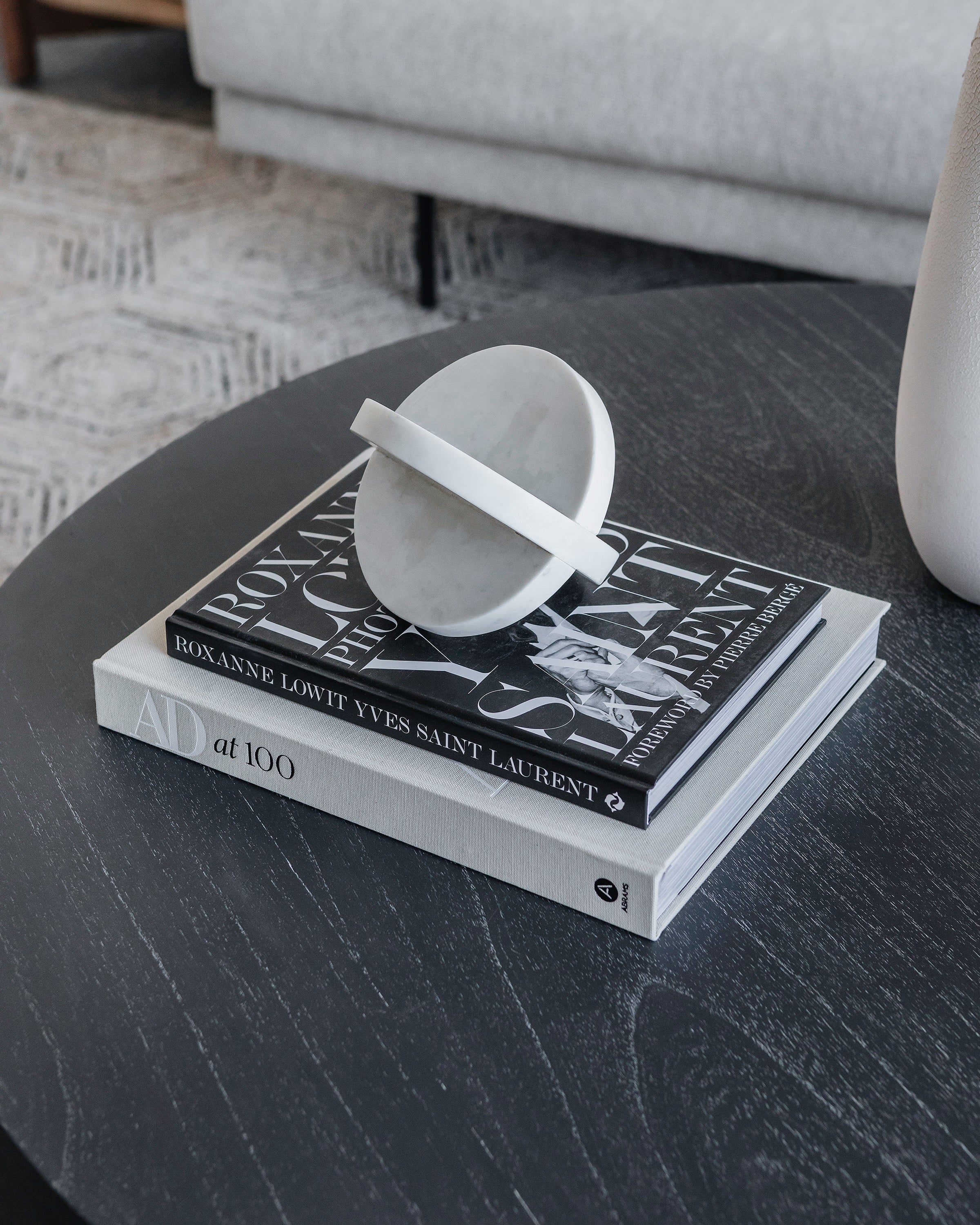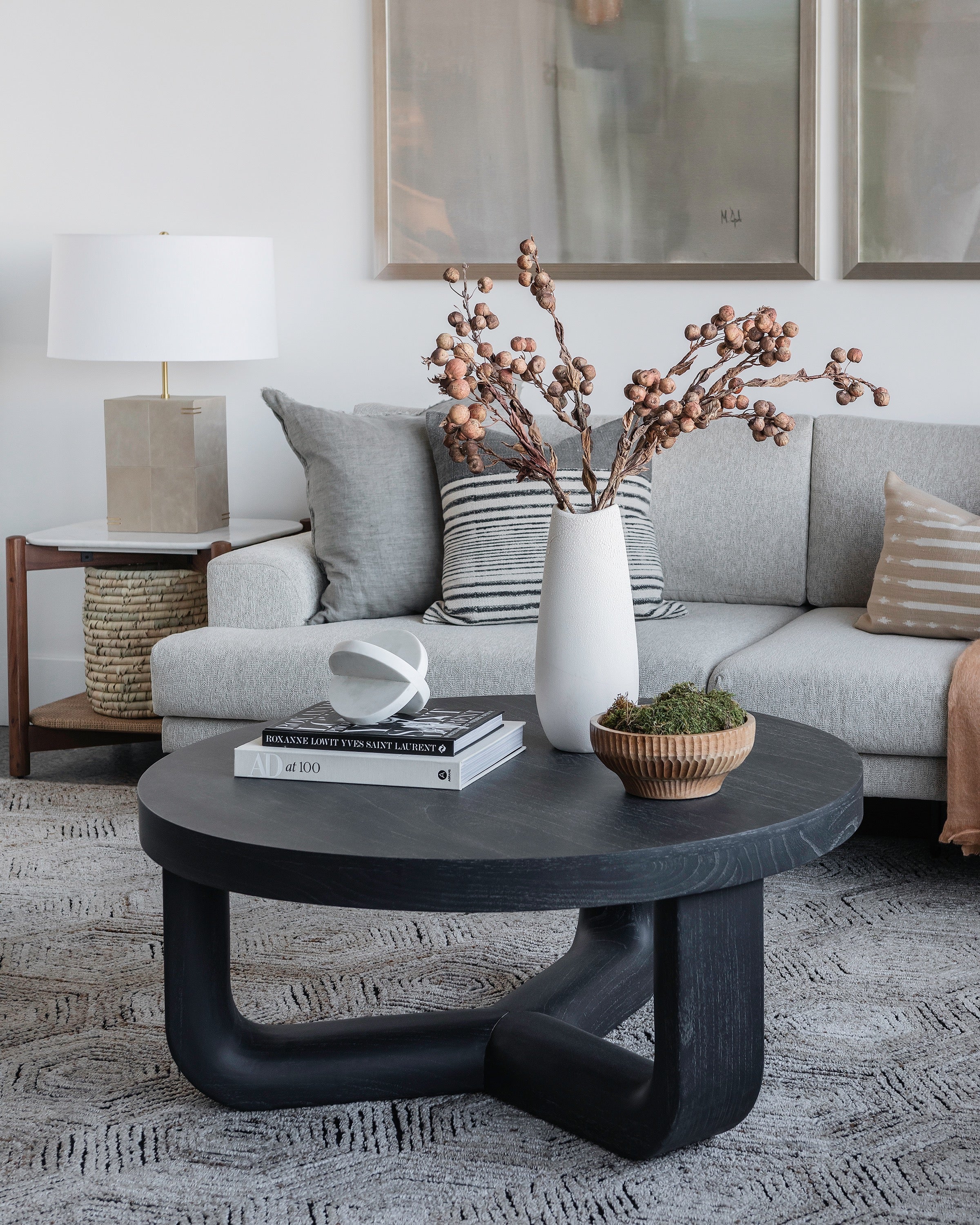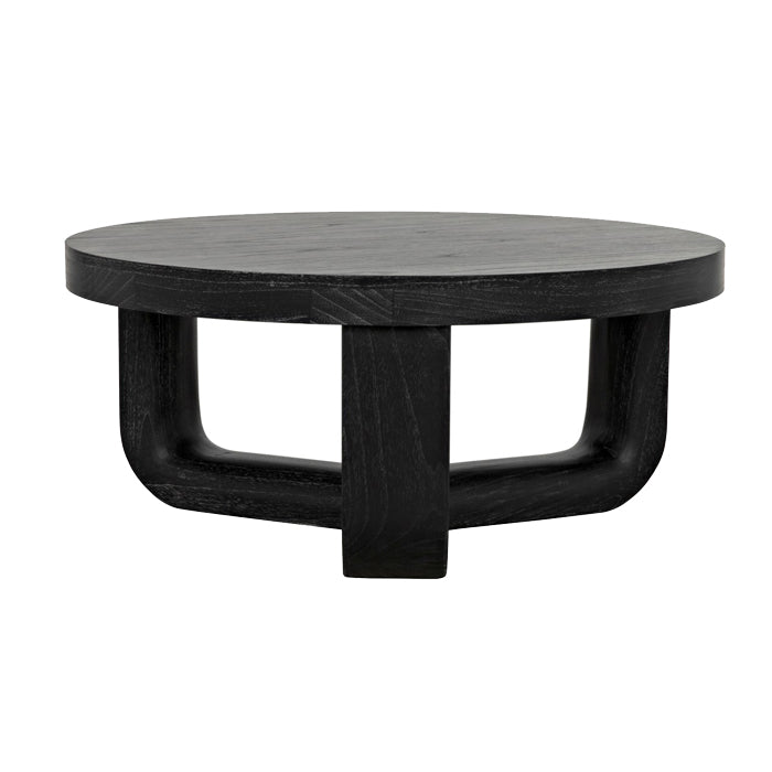 The Mahone Coffee Table is crafted from mahogany wood in a cinder black finish.