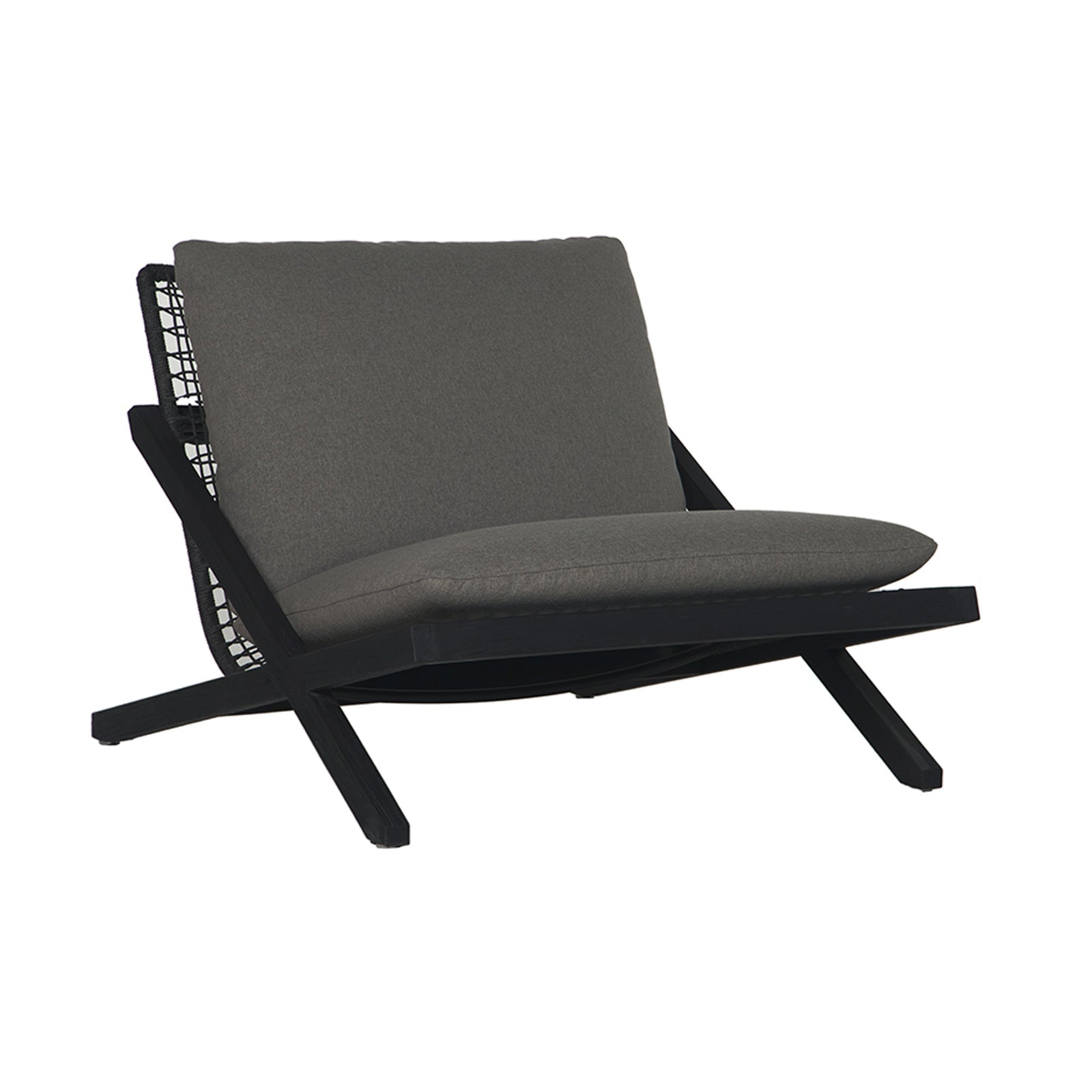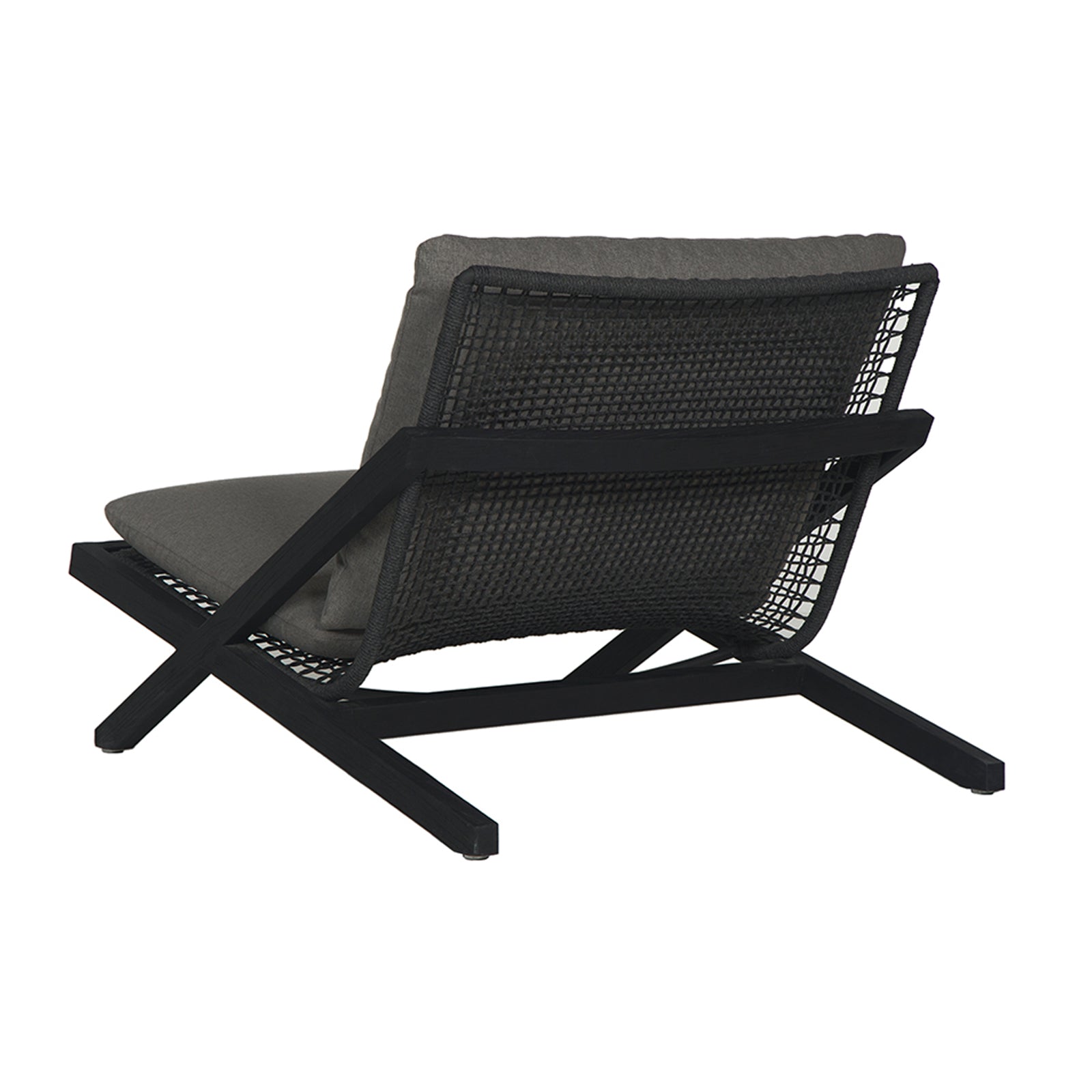 The Bo Outdoor accent chair will transport you to a relaxing outdoor retreat. Crafted with a dark grey powder coated aluminum frame, dark grey weave seatback and gracebay grey fabric seek, this piece creates a stylish and modern look. Fabric offers extreme UV resistance and the frame is resistant to corrosion and weather hazards.