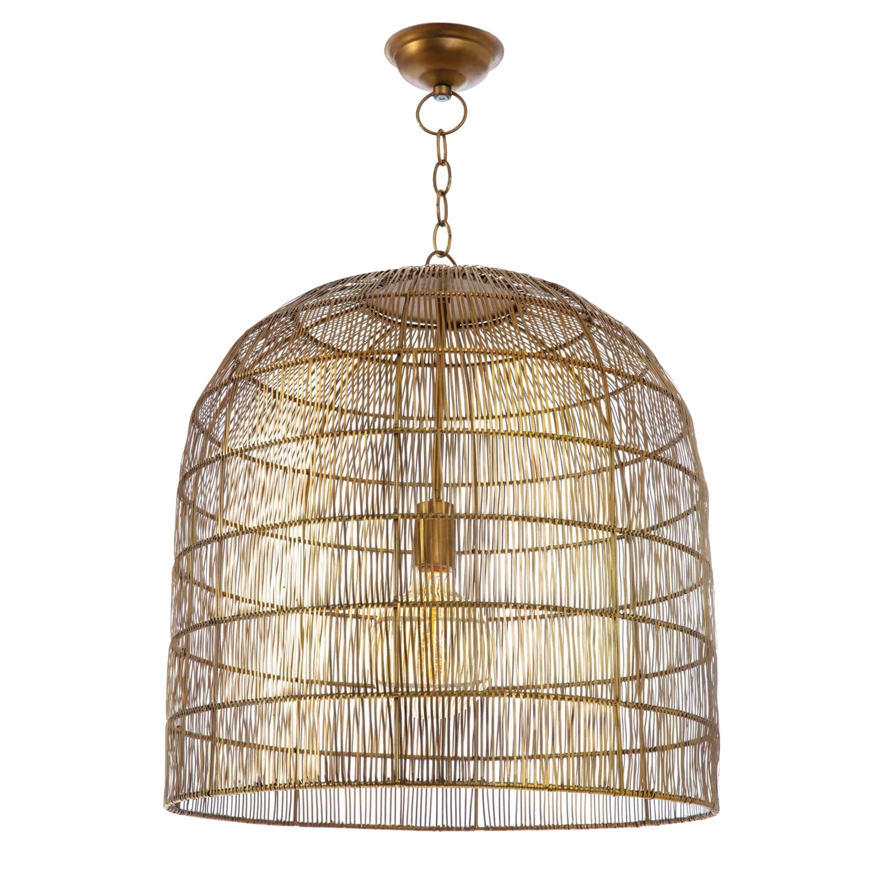 The Emery pendant is fabricated of iron that has been expertly fashioned to give a light and airy appearance. The woven metal basket creates interesting light play when lit and functions as a lovely sculptural piece when not. Place this fixture over a dining table, kitchen island, or accent a corner of a living room or bedroom with the warm glow of this organic beauty.