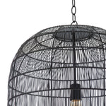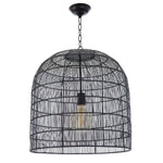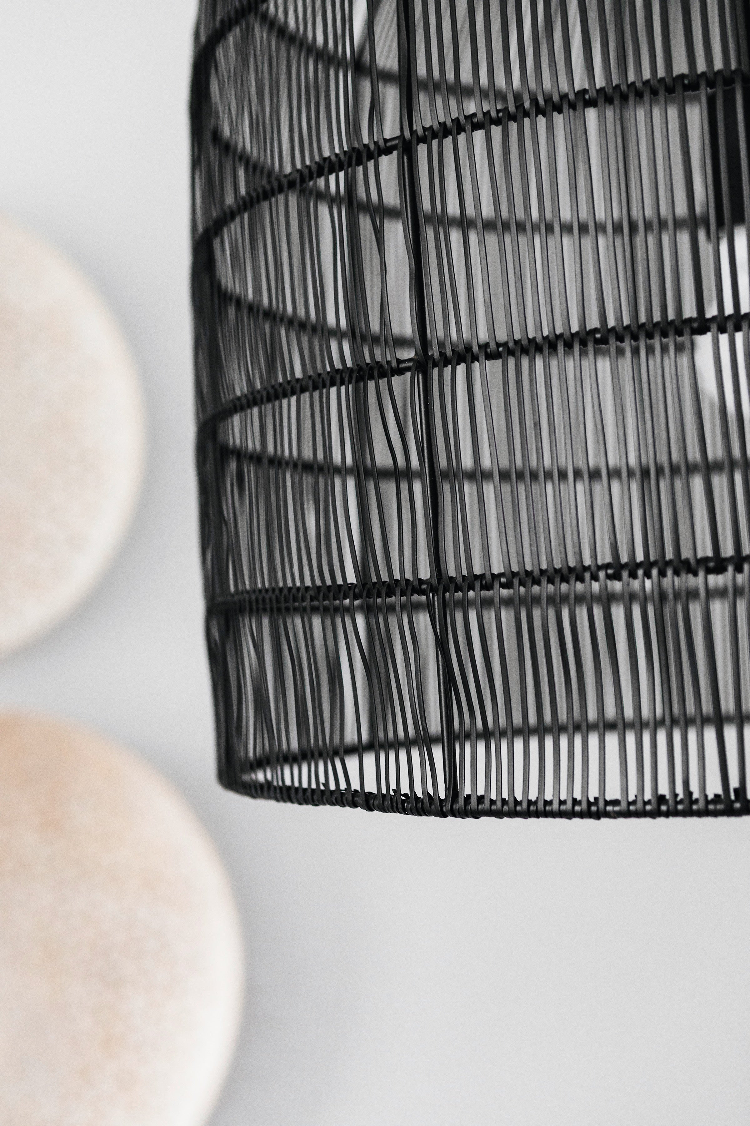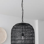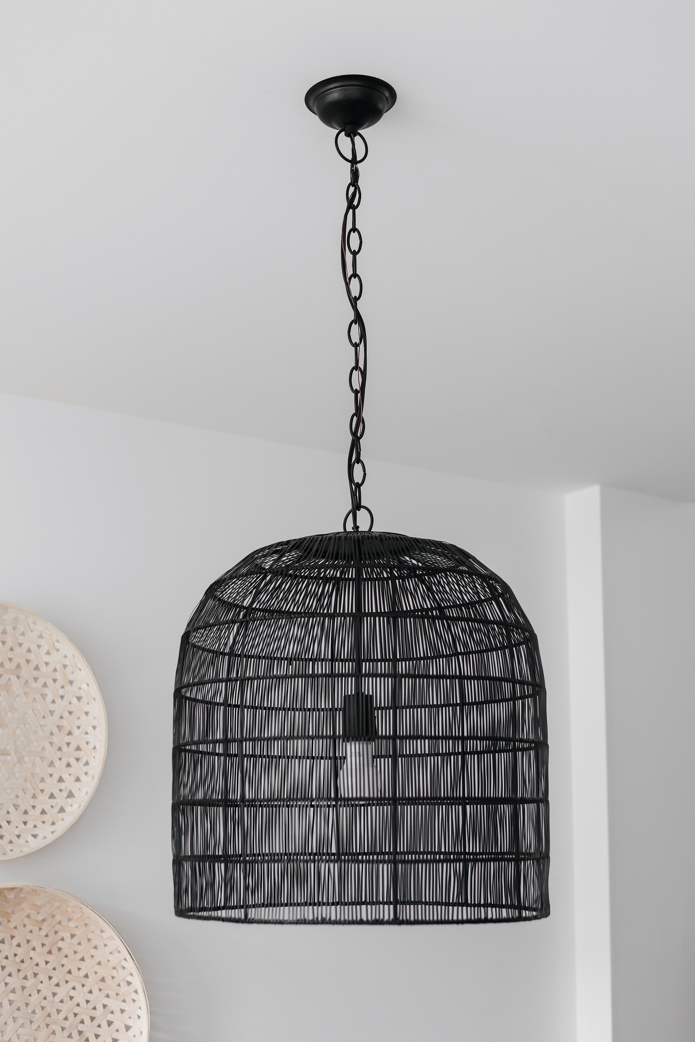 The Emery metal pendant is fabricated of iron that has been expertly fashioned to give a light and airy appearance. The woven metal basket creates interesting light play when lit and functions as a lovely sculptural piece when not. Place this fixture over a dining table, kitchen island, or accent a corner of a living room or bedroom with the warm glow of this organic beauty.