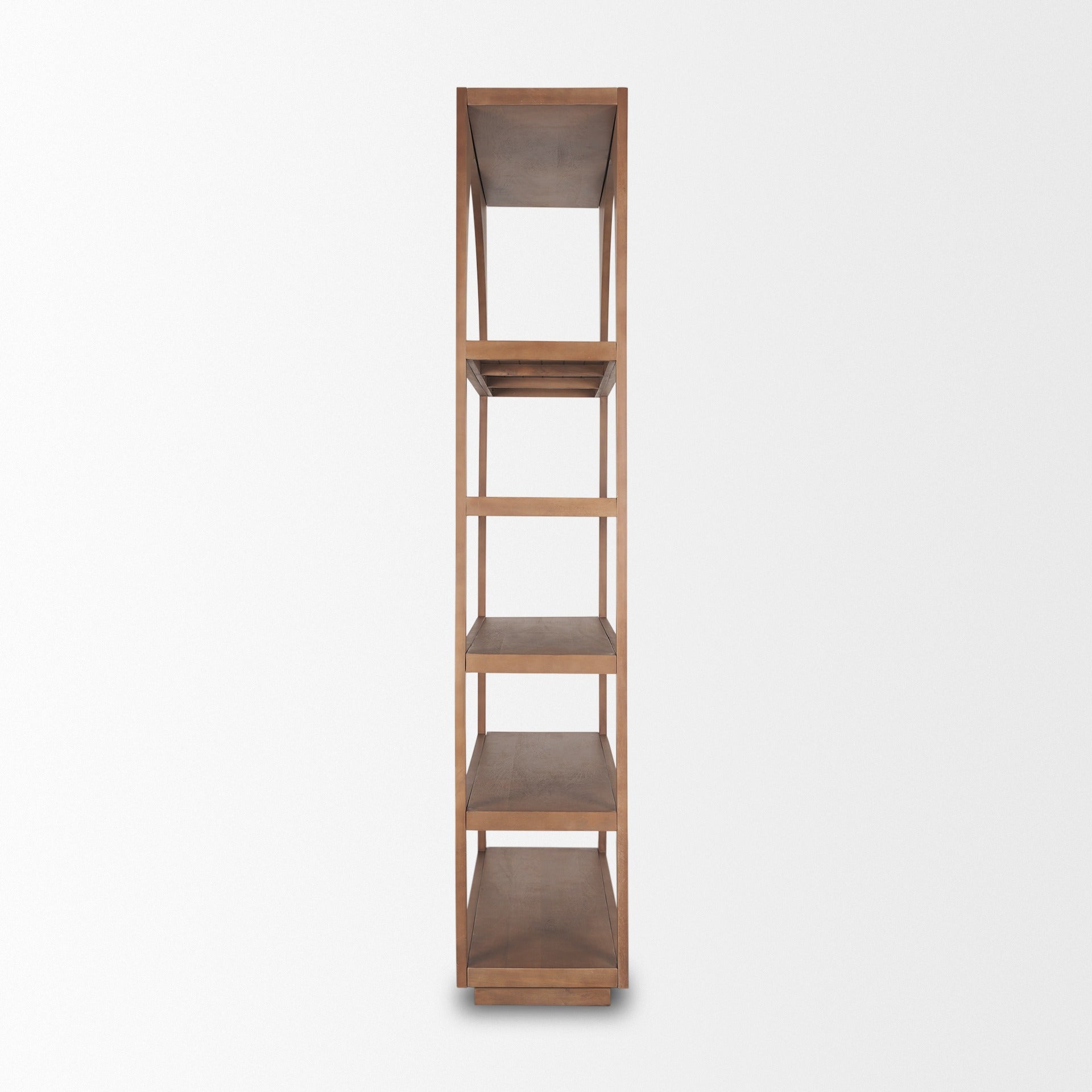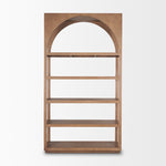 Bela Shelving Unit is made of two, solid medium brown mango wood arched frames with 5 open shelves.