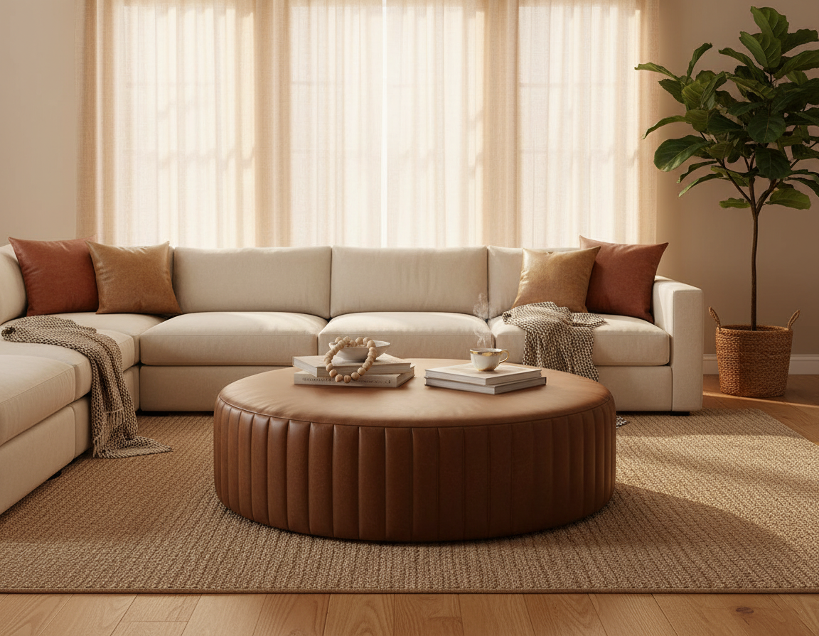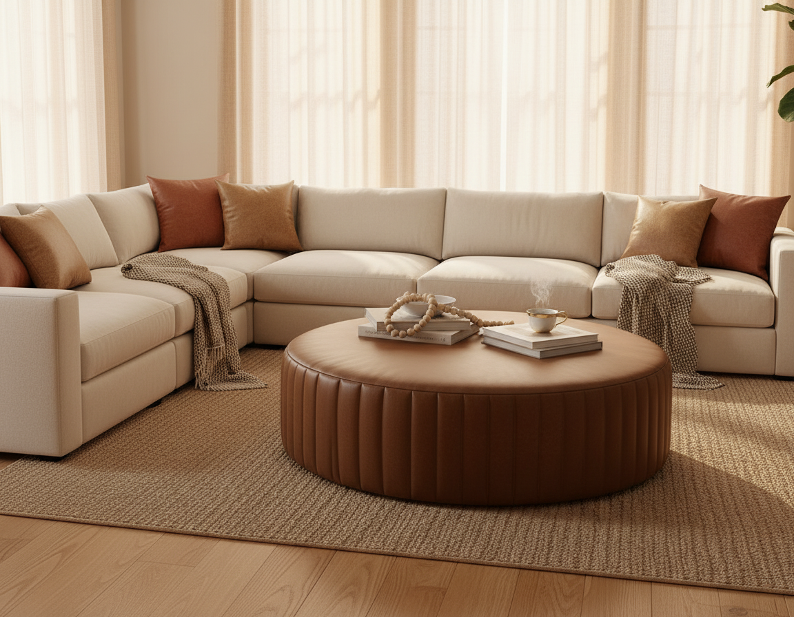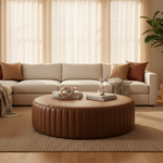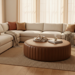 The Roma Ottoman is a versatile piece that adds a touch of comfort to any space. Features a simple round silhouette upholstered in our luxurious Lucia Tobacco Italian leather. Vertical channel tufting across the sides creates added dimension to the piece. Handle with Care: This design has been crafted with 100% aniline leather. Leather is a natural material; as such, colour variations, markings, wrinkles, grooves and light scratches are acceptable and appreciated characteristics. No two pieces are alike. Visit our Product Care page for more information on how to ensure the lasting beauty of this piece.