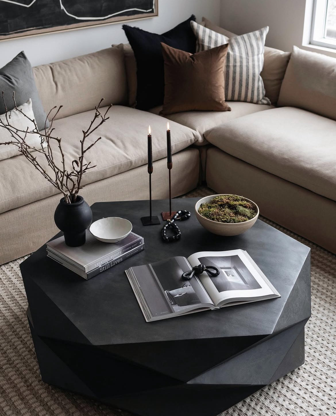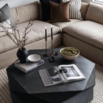 Finished in a striking black, the Felix is a stunning coffee table that is shaped like a hexagon. It features a geometrically appealing, contoured base that adds to the visuals. In addition to being visually interesting, the Felix can also be termed extremely functional, thanks to the hinged top with storage underneath.