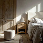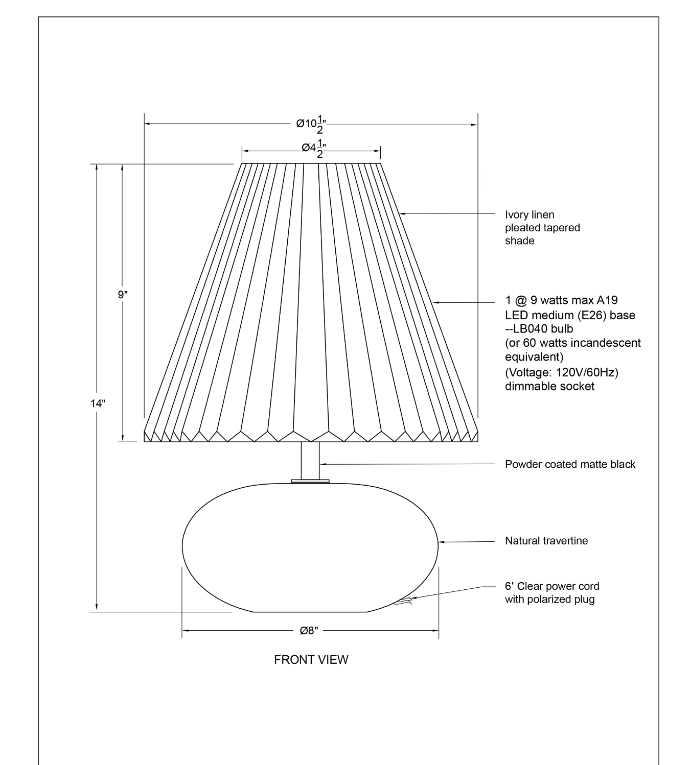 Inspired by Canadian designer and interior stylist, Arren Williams, this small but mighty lamp was created for spaces craving stylish illumination. Measuring 10 inches wide by 14 inches high, it has the right proportions for making a big impact from a compact footprint. Its travertine base and cream pleated tapered drum shade are a perfect fit in today’s neutral interiors.