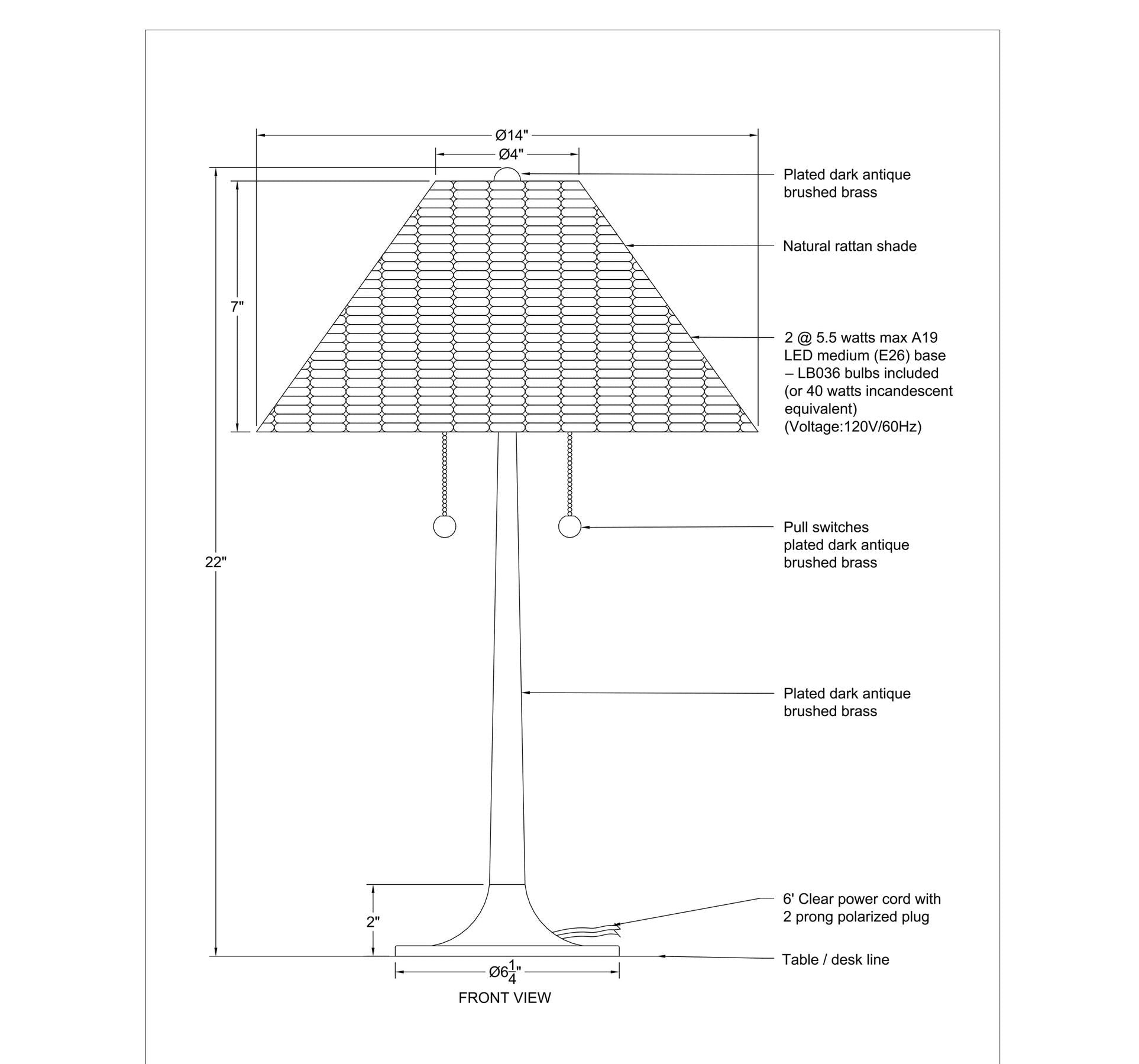 OAH: 22"H SHADE: Dia-14" X 7"H