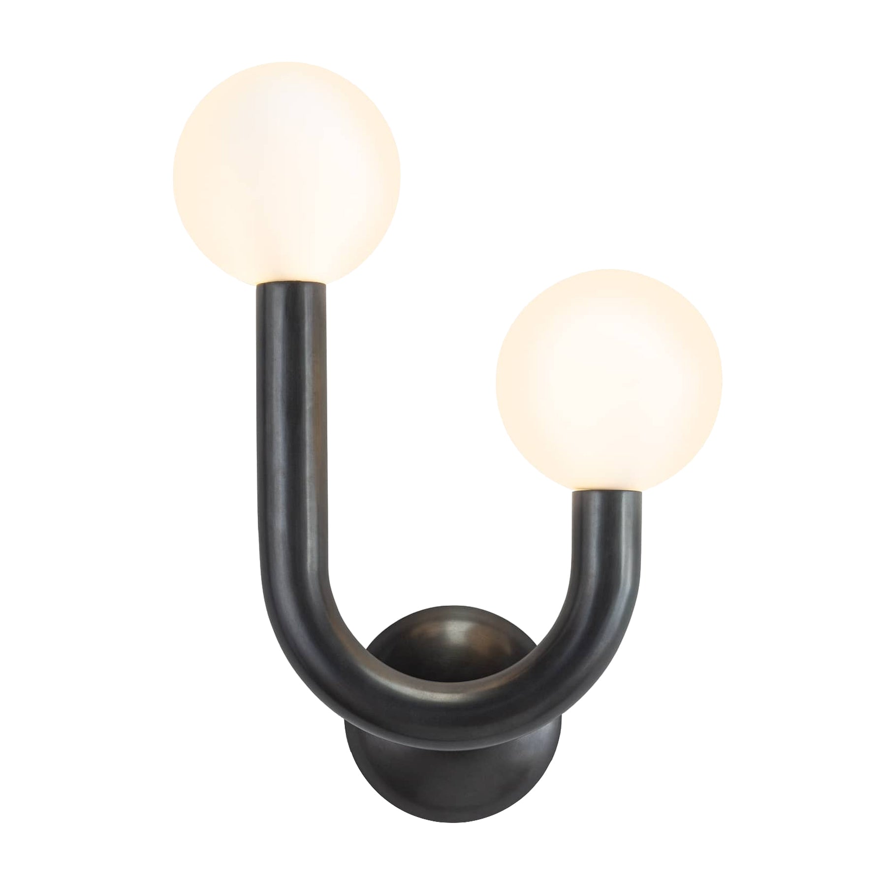 The Harry Sconce is a unique mix of modern and playful. Harry's simple, asymmetrical charm creates uplifting illumination perfect for an entryway, hallway, bedroom or living space. The sconce's metal frame and contrasting matte white glass globes create an elevated take on a playful shape.