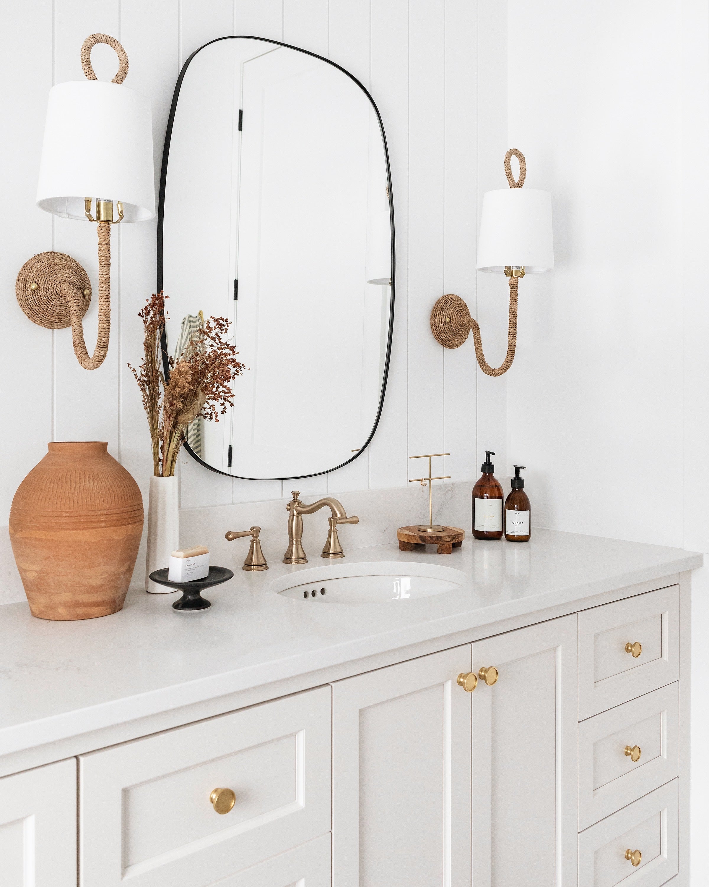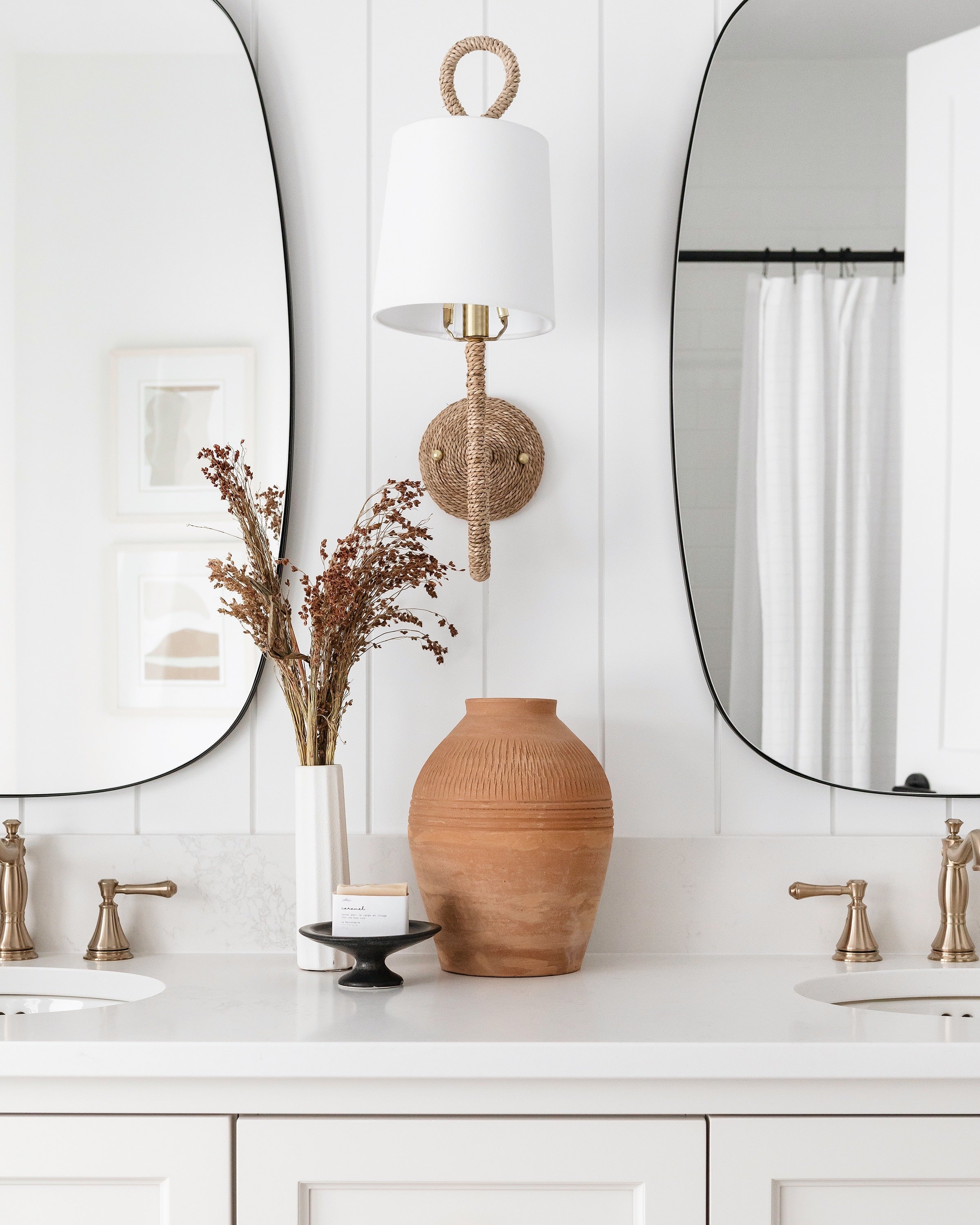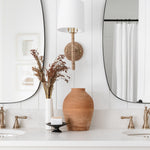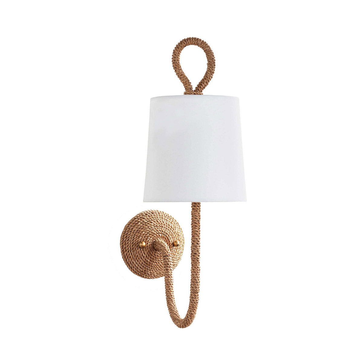 Natural woven rattan provides a "washed ashore" look on the Bimini sconce. Looped detailing also provides a nautical touch, while natural linen shades tailor the look. Install these in a hallway of a coastal or rustic home to tie its design together.