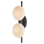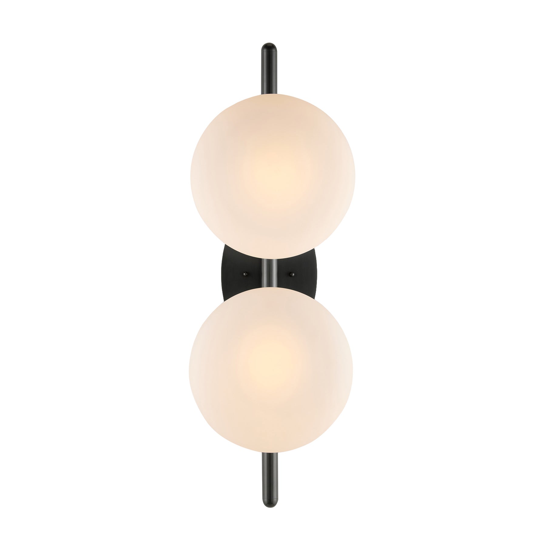 A throw-back to the Industrial Age, the Sergio Double Wall Sconce is made of metal in an oil-rubbed bronze finish. Attached to the frame are two opaque glass shades in a time-honoured shape that has been popular for centuries. They will glow softly when the large-scale black sconce is switched on to create a luminous contrast of dark and bright. A design detail worth noting is how short rods extend above and below the back plate.