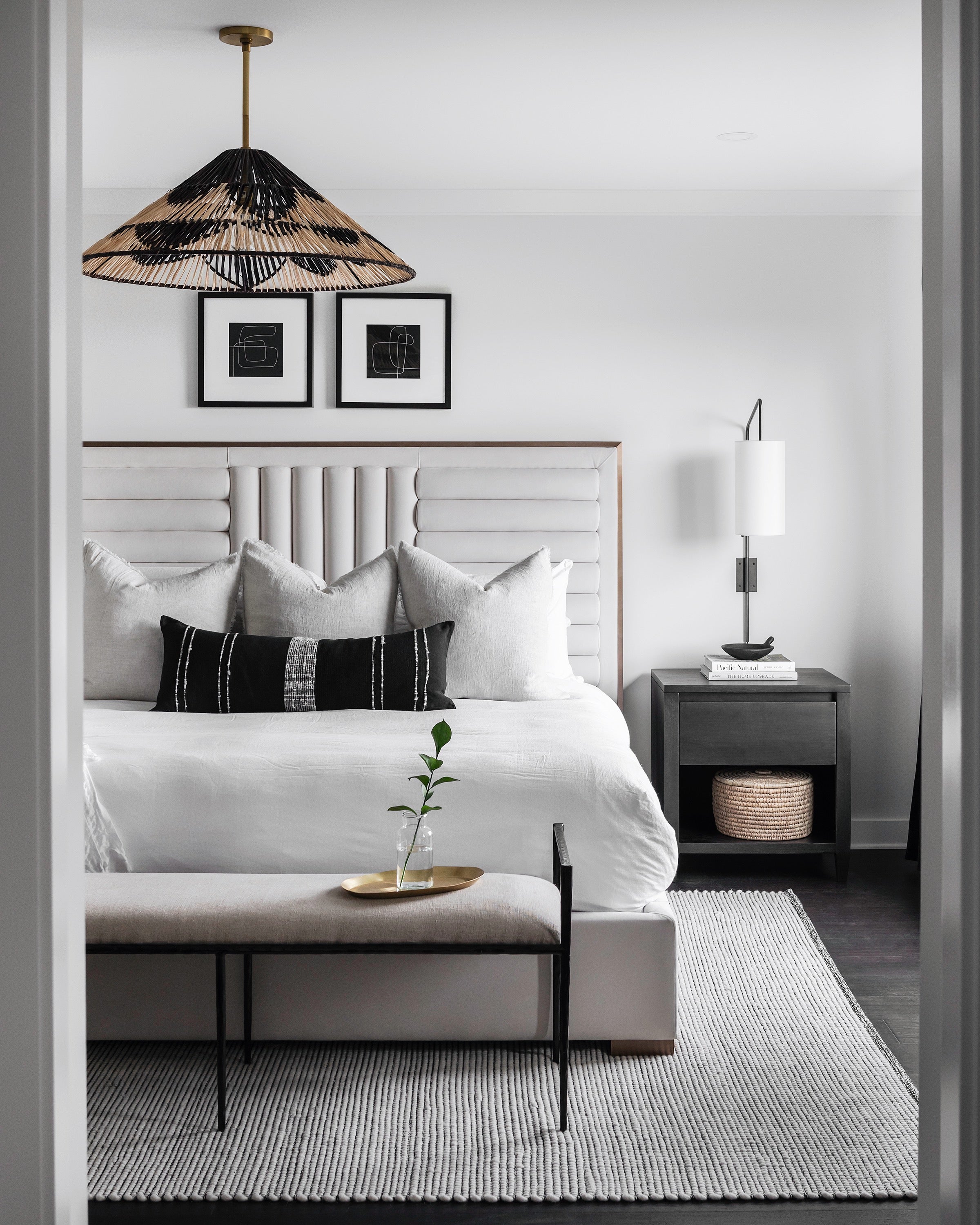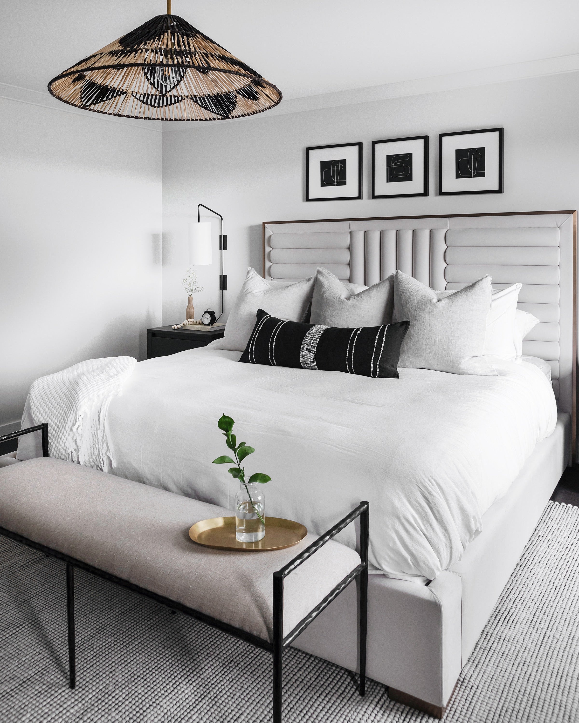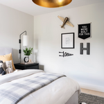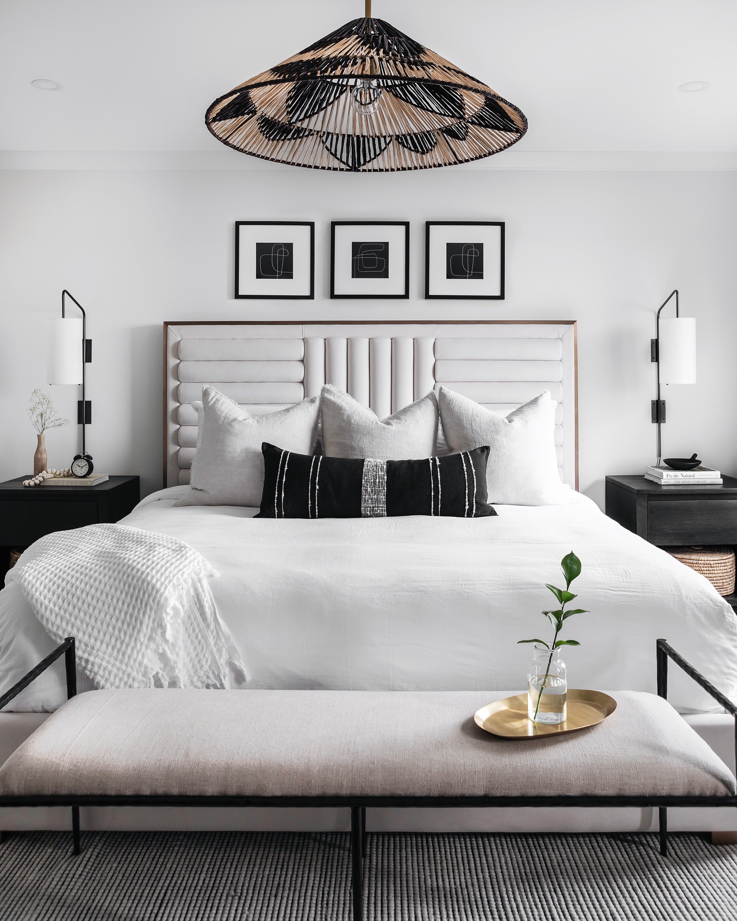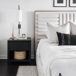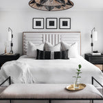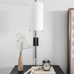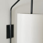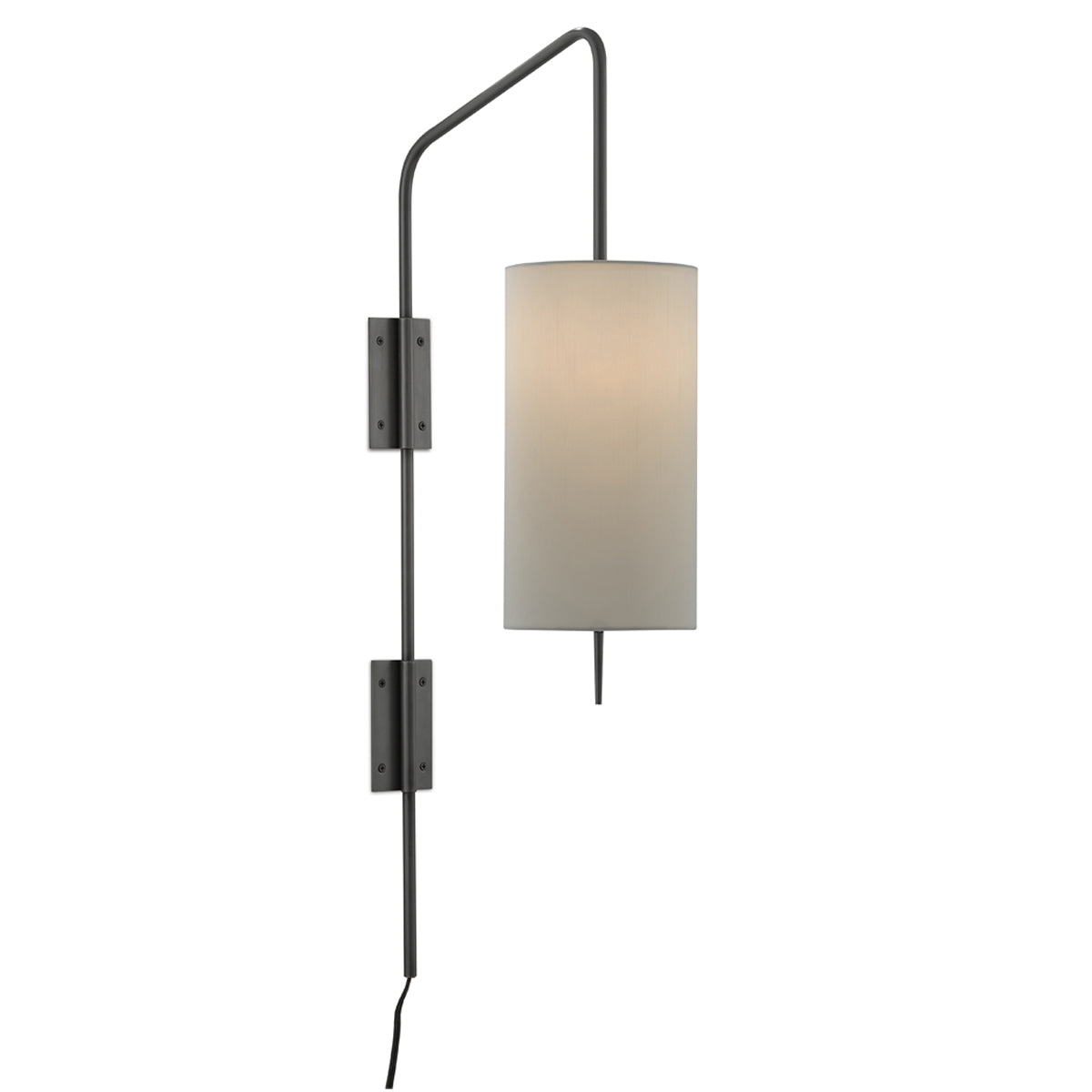 Our Tam wall sconce has an articulated armature made of metal in an oil-rubbed bronze finish. The angle of the arm that holds the bulb, the shape of the final, and the way the off-white shantung shade cleanly joins the two makes this black sconce a cohesive design with a rough luxe vibe.