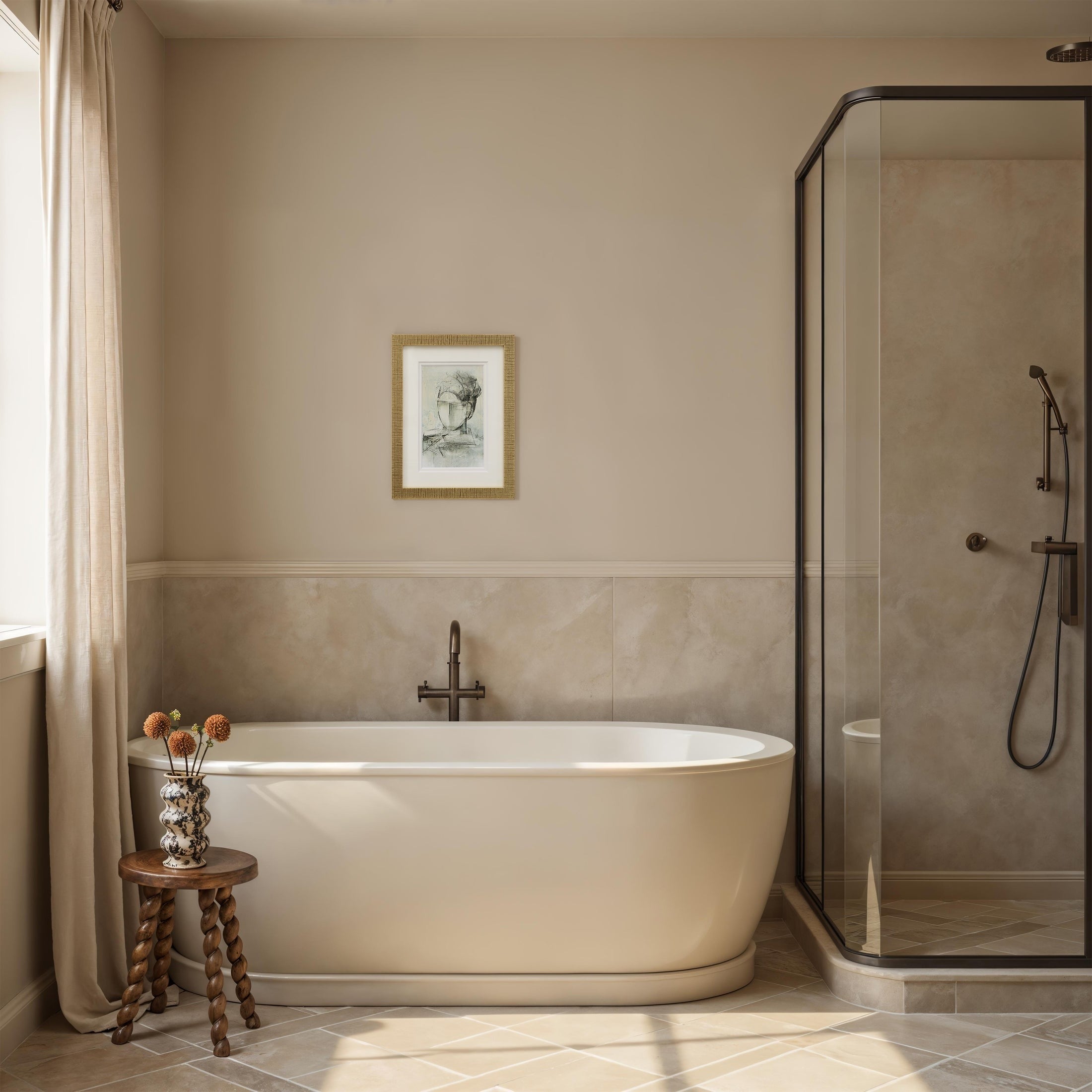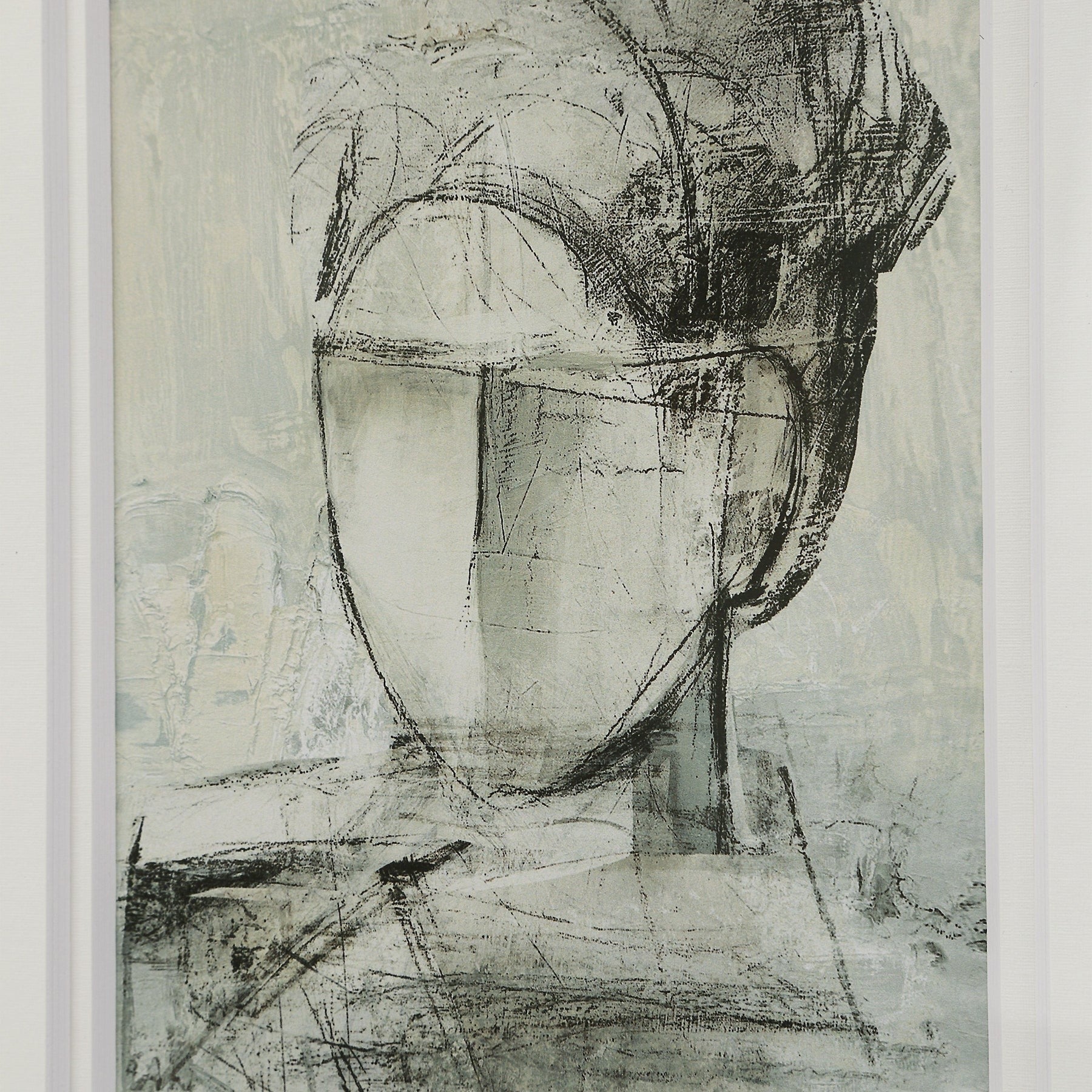 The Allison portrait bookshelf art blends a modern abstract aesthetic with classic elegance. Soft, harmonious tones and expressive brushstrokes are showcased under glass with a double mat, creating a refined accent that enhances shelves, consoles, or built-ins with subtle sophistication and artistic charm.