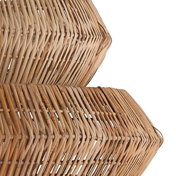 Painstakingly woven using traditional techniques, the Alpes pendant is an impeccable marriage of artistry and quality construction. Natural rattan forms the body of this geometric chandelier, supported by a khaki wrought iron frame. This piece adds just a touch of worldly flavour into contemporary interiors.