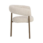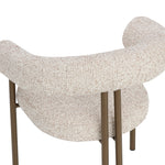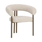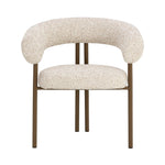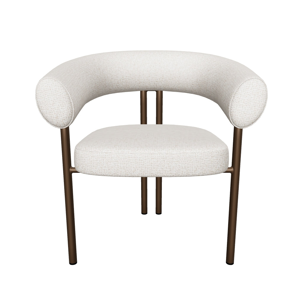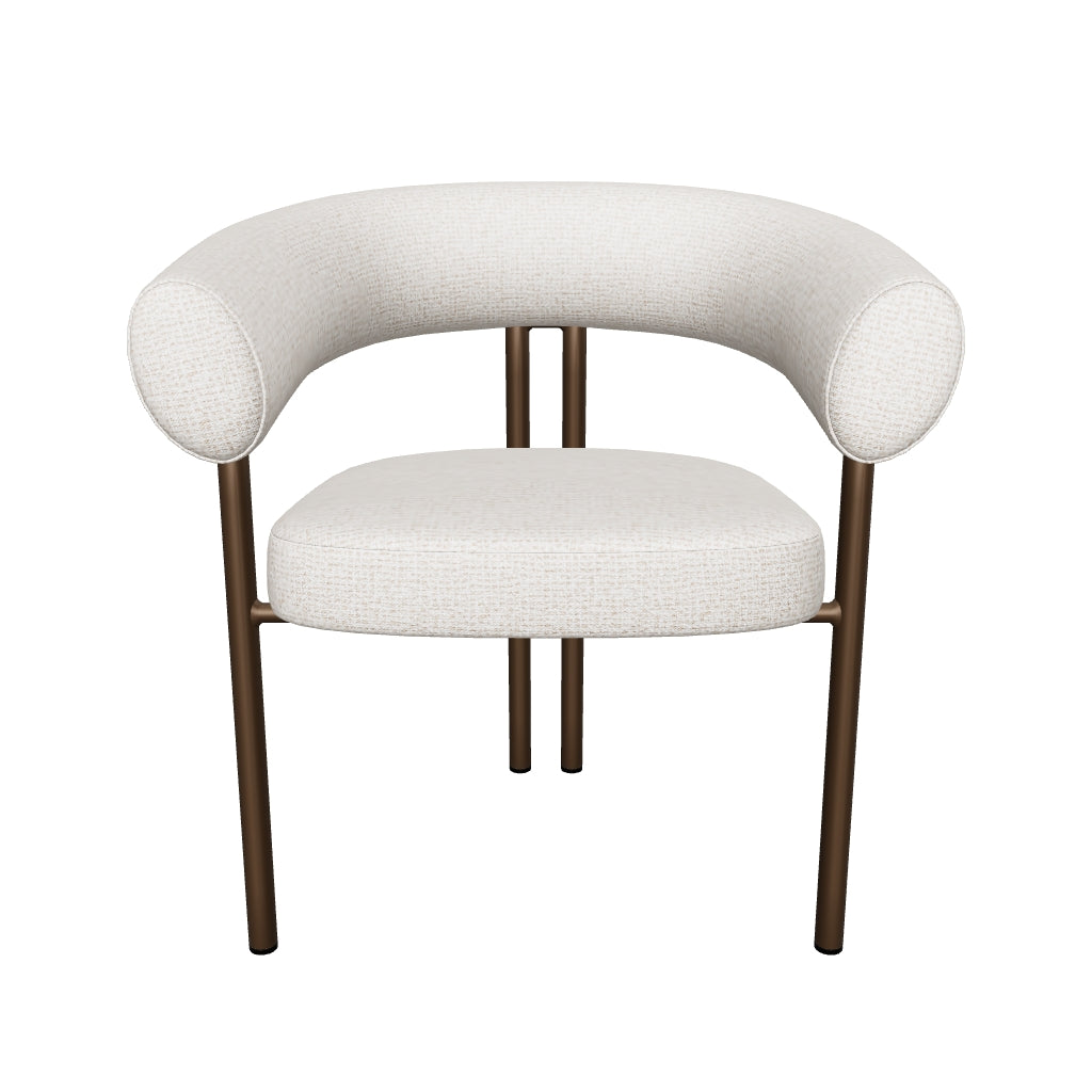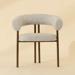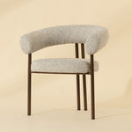 The Danforth Dining Armchair brings tactile personality with playful curves and richly textured fabric. A rounded seatback enhances comfort with plush contours that offer gentle support, while the black iron legs ground the piece with a sleek, modern presence.