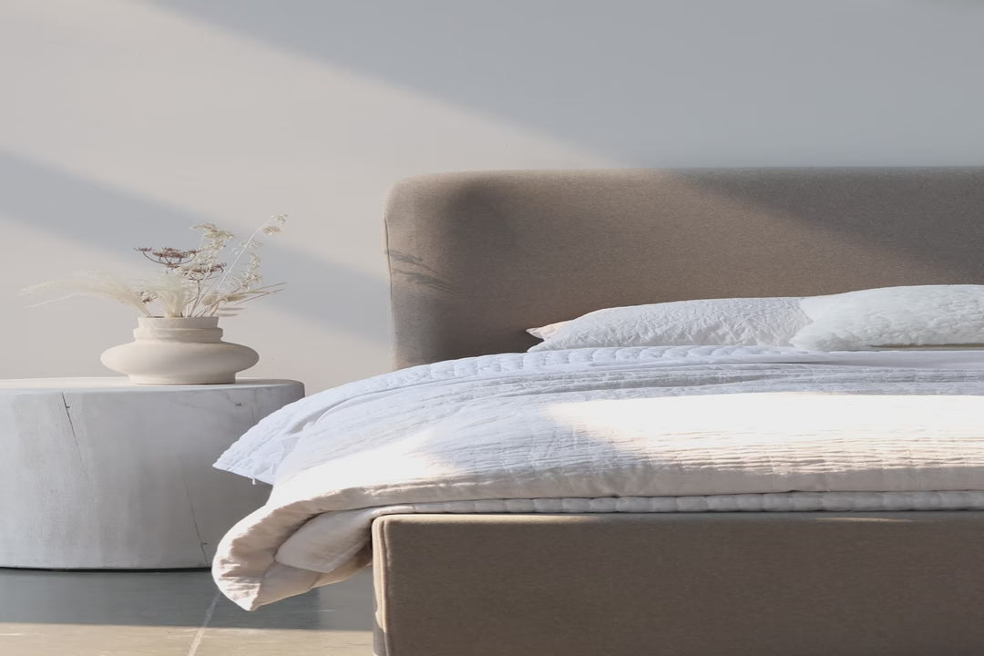Upholstered in a show-stopping velvet sandstorm fabric, you will fall in love with the way Faye looks in your space. Functional and beautiful, the gently curved headboard adds subtle on-trend style and elevated design.