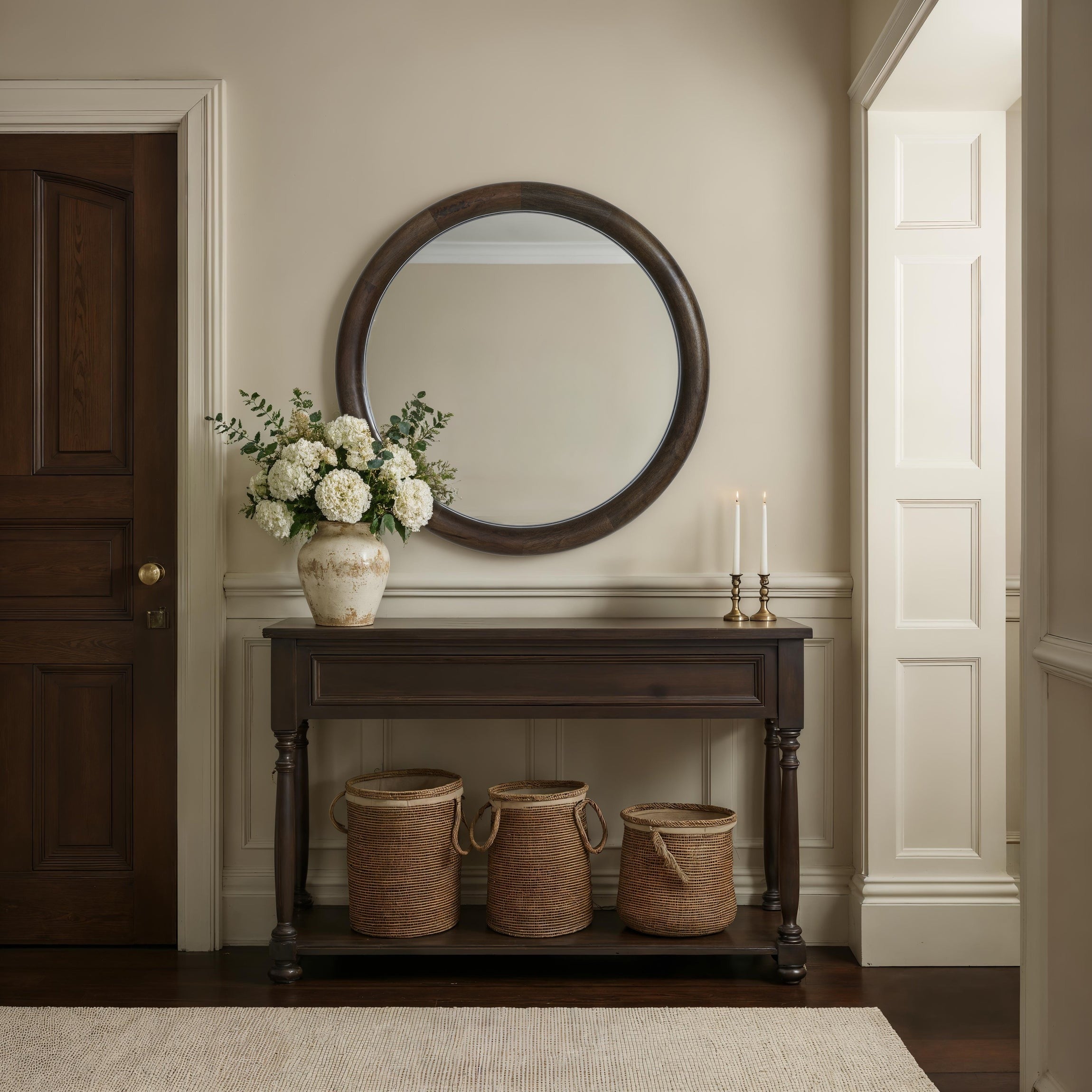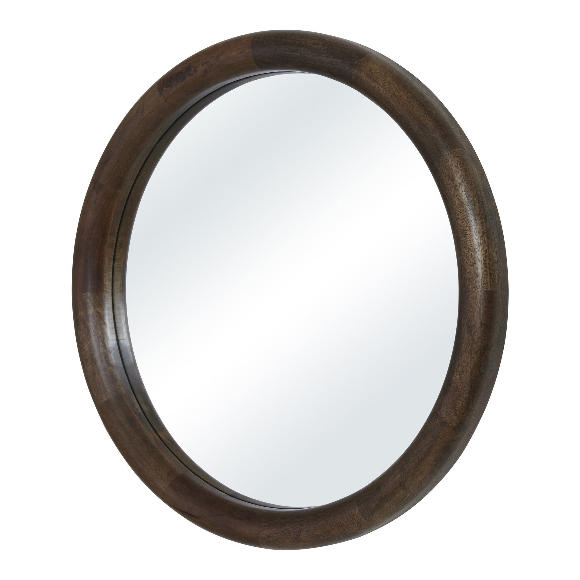 Bring inviting texture and understated beauty to any space with the Floresta round wall mirror. Its walnut-stained mango wood frame highlights the natural grain, giving the design warmth and authenticity, while its crystal-clear glass enhances brightness and depth. Equally at home in modern or traditional interiors, this mirror offers a refined, organic touch in any setting.