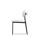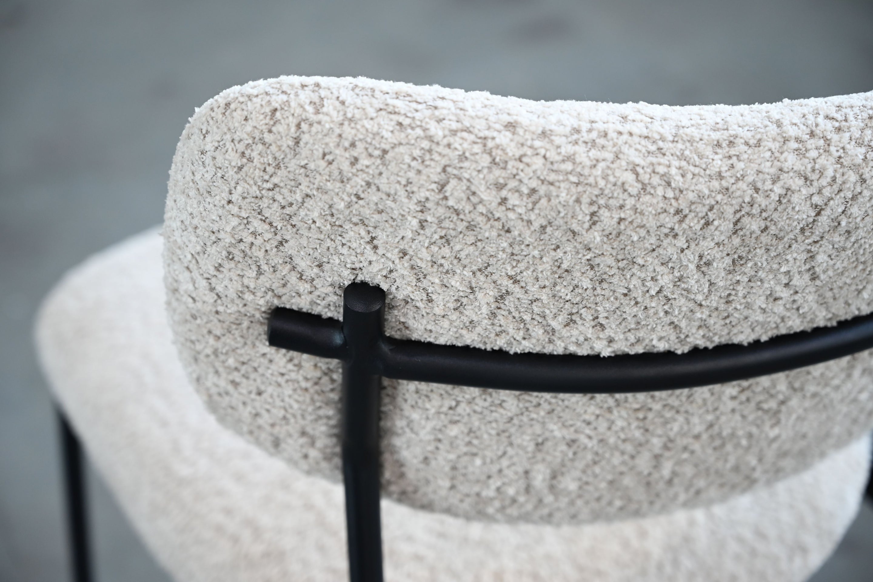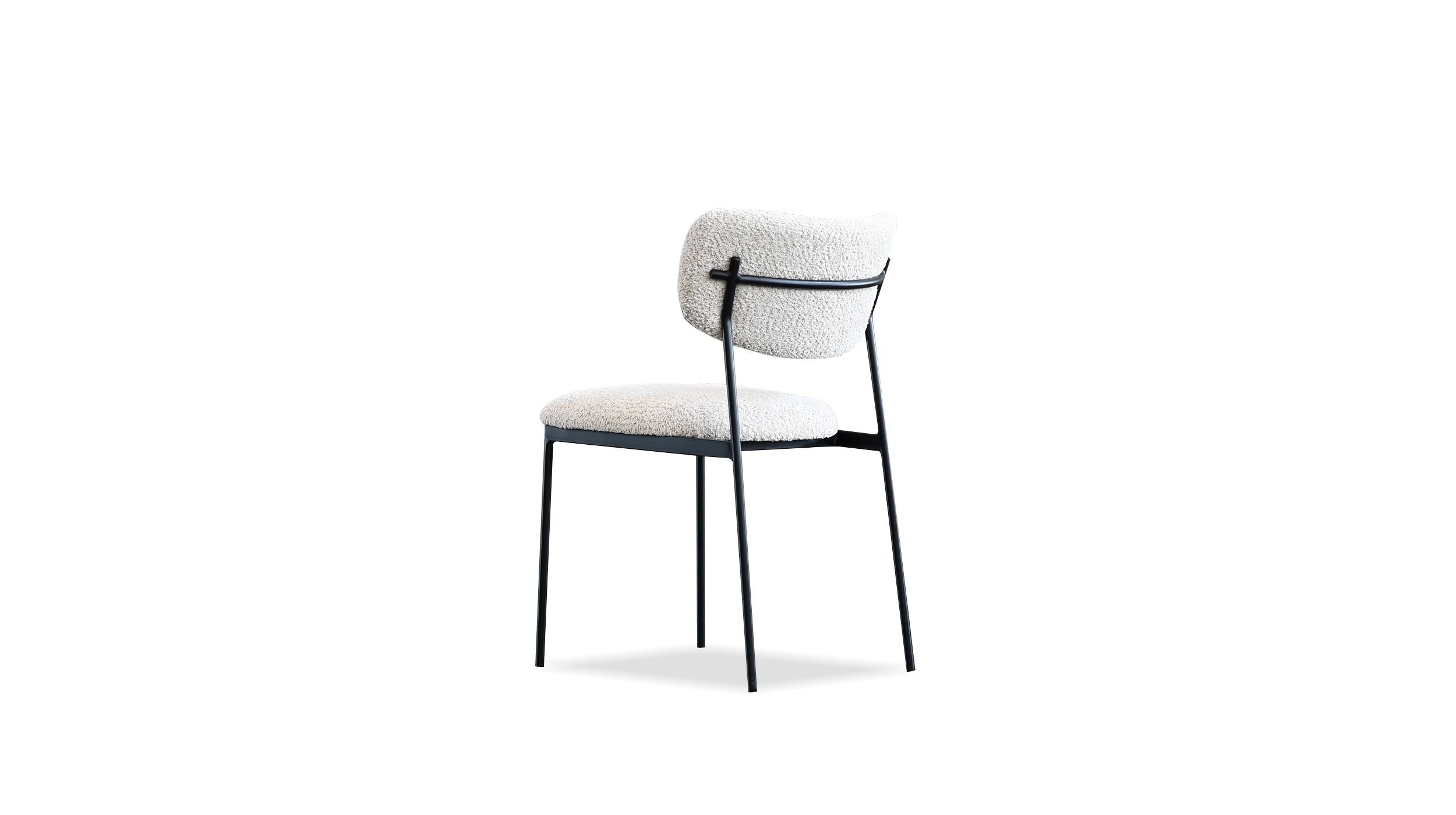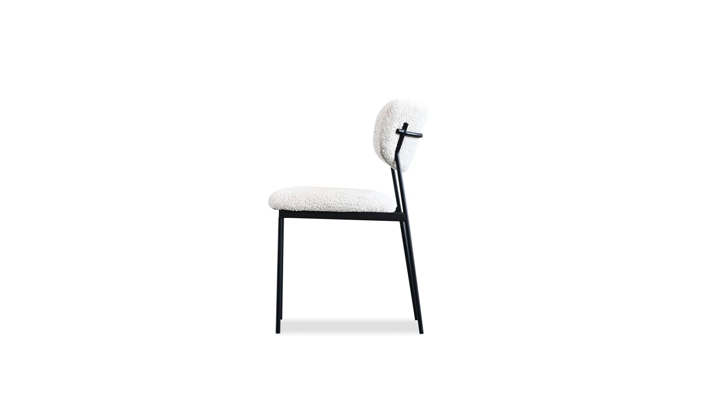 The Holly dining chair features a compact design with a cozy feel. The plush curved backrest and seat design allows you to sit comfortable for hours. Holly is available in biscuit beige with matte black powder coated steel legs.