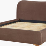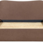 Beneath the plush upholstery, a sturdy brown-stained rubber wood base adds warmth and durability, while the cushioned polyurethane foam offers comfortable support without compromising on form. Thoughtfully designed and beautifully balanced, this bed anchors the room with texture, depth, and timeless appeal.