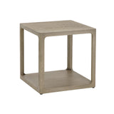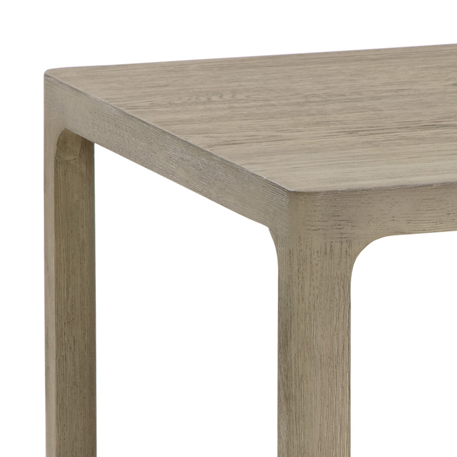 The Kathleen Side Table showcases a solid oak veneer design finished in a smoke grey finish. Frame-like structure of the side table allows variety for styling and storage.
