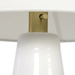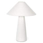The Koda Ceramic Table Lamp is accented with horizontal throwing lines that add handcrafted texture and depth. Topped with a distinctive triangular coolie shade, this lamp introduces a fresh play on proportion.