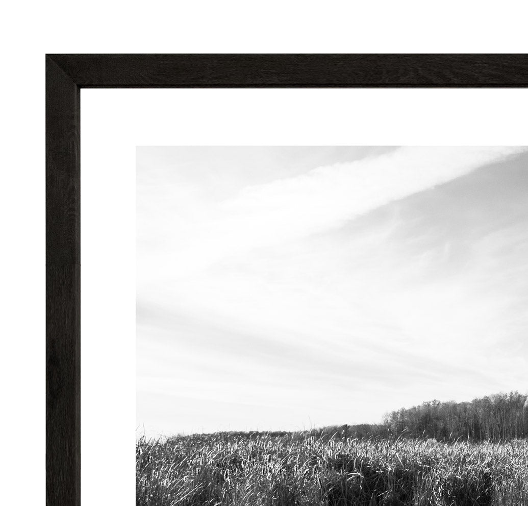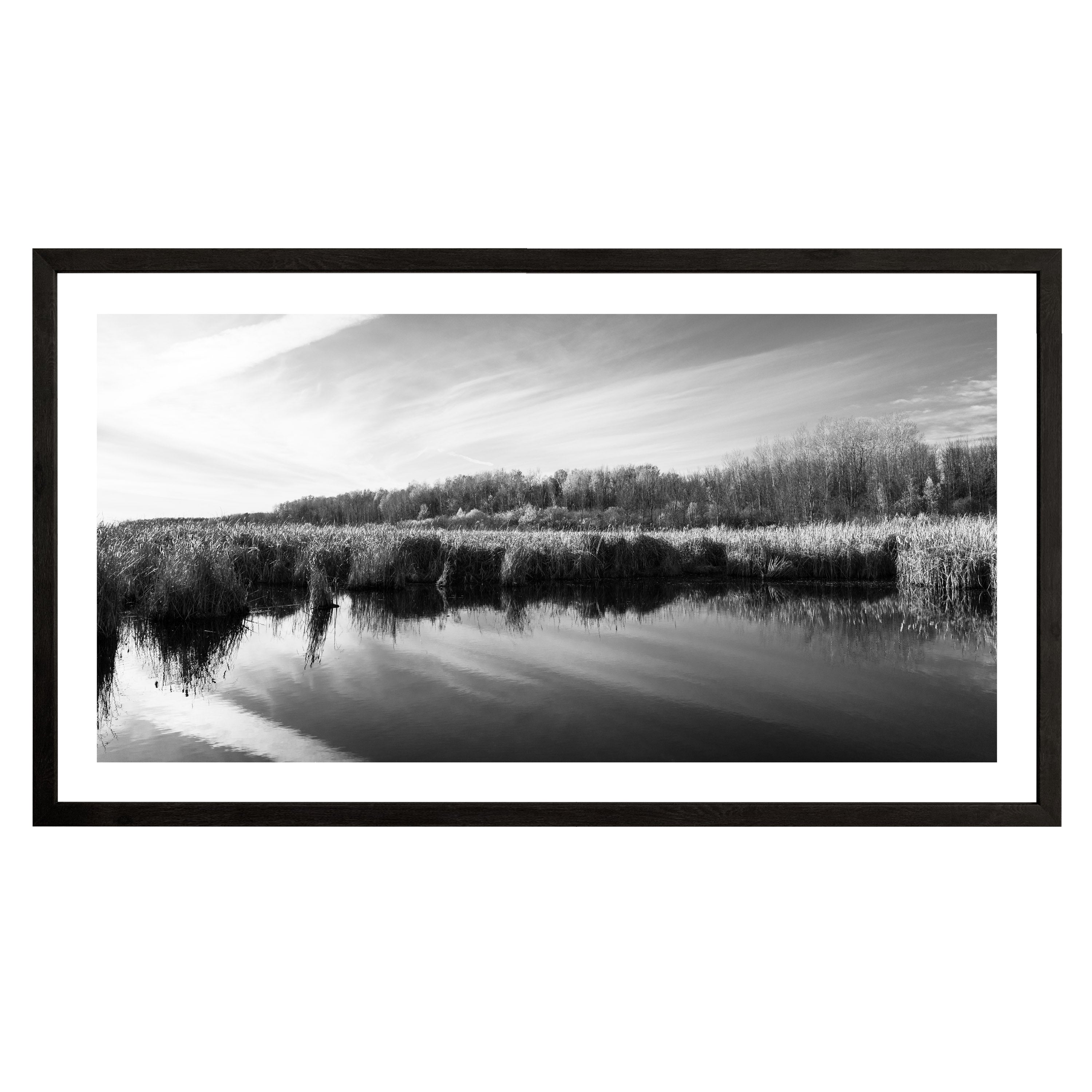 Photograph of the Mer Bleue bog in Ottawa framed in a black wood textured frame.