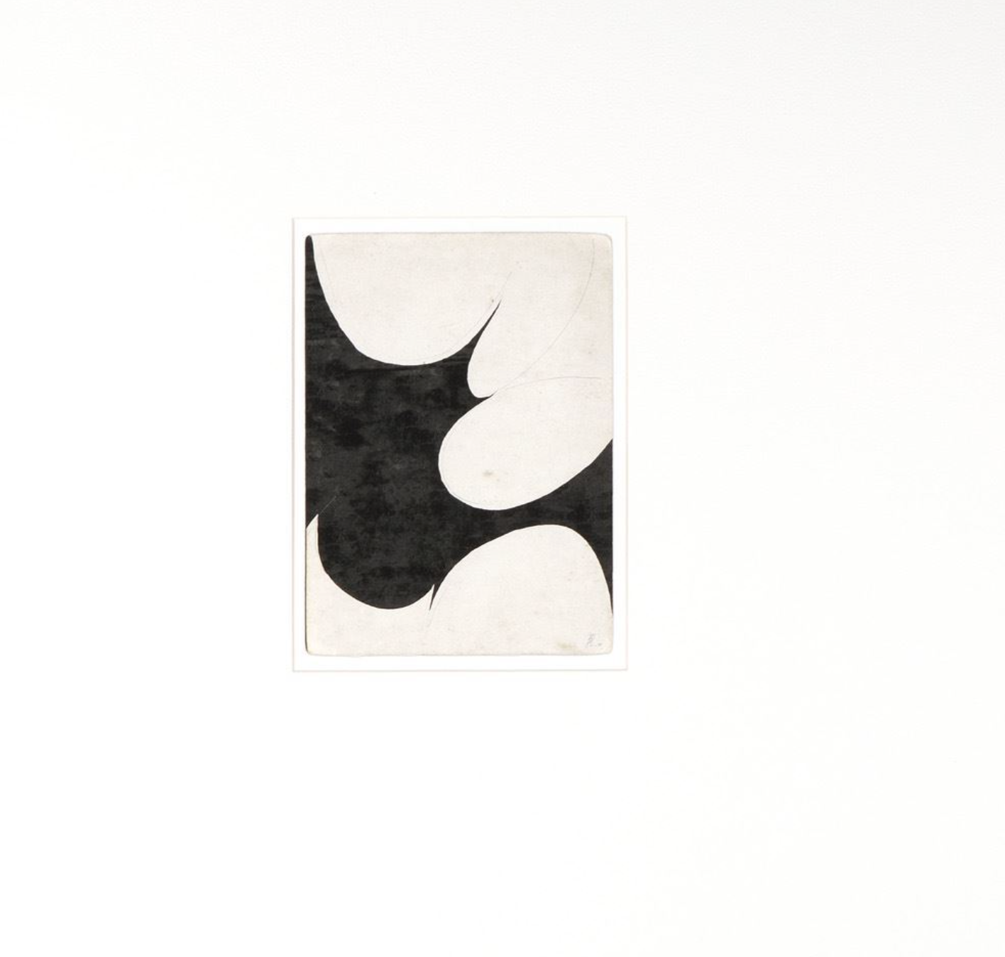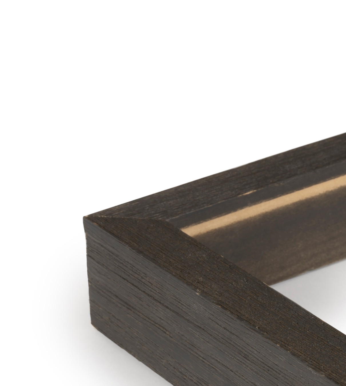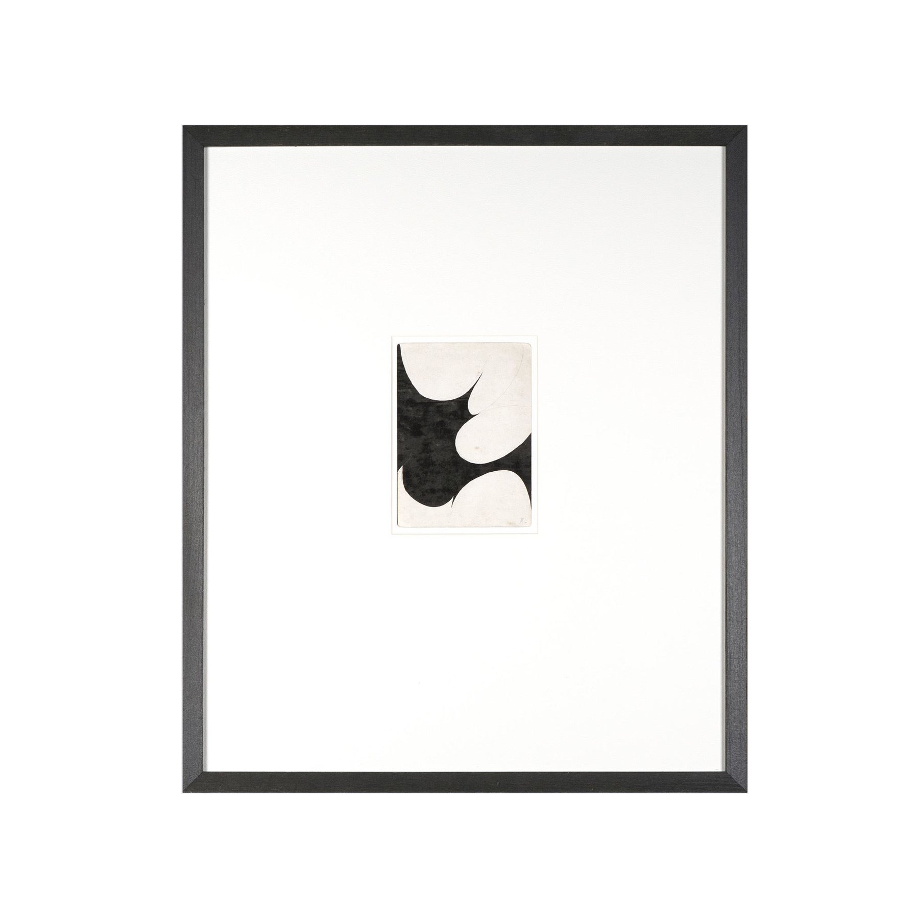 The shapely forms of these four contemporary, minimal compositions are well played out in graphic black and white. Each is framed with pebbled mattes and contrasting rustic charcoal frames.