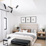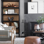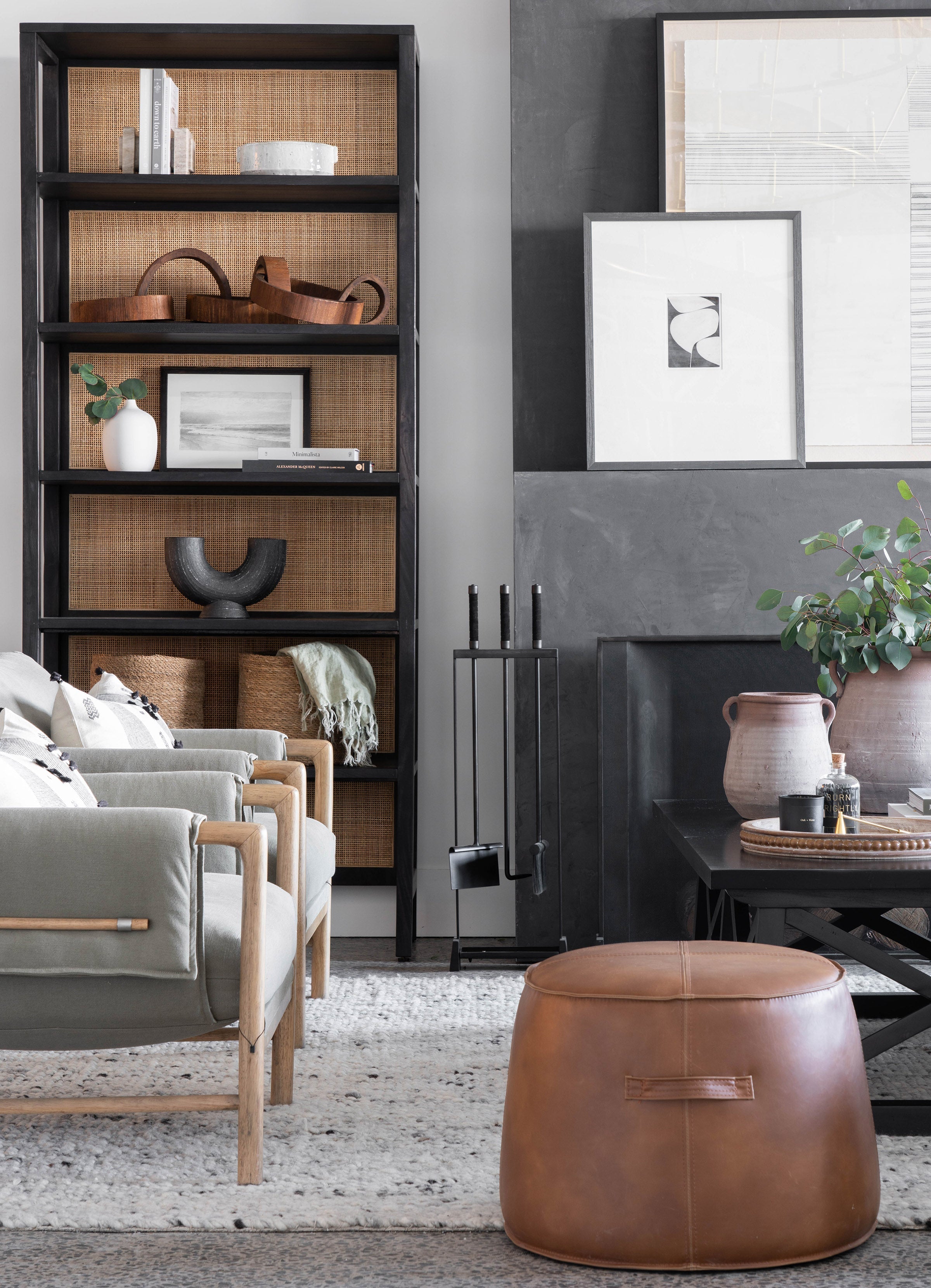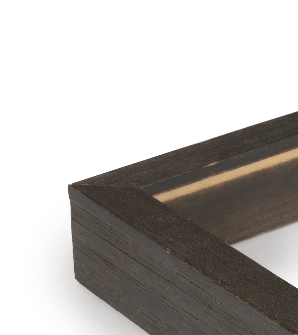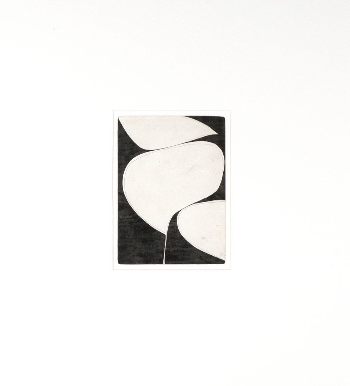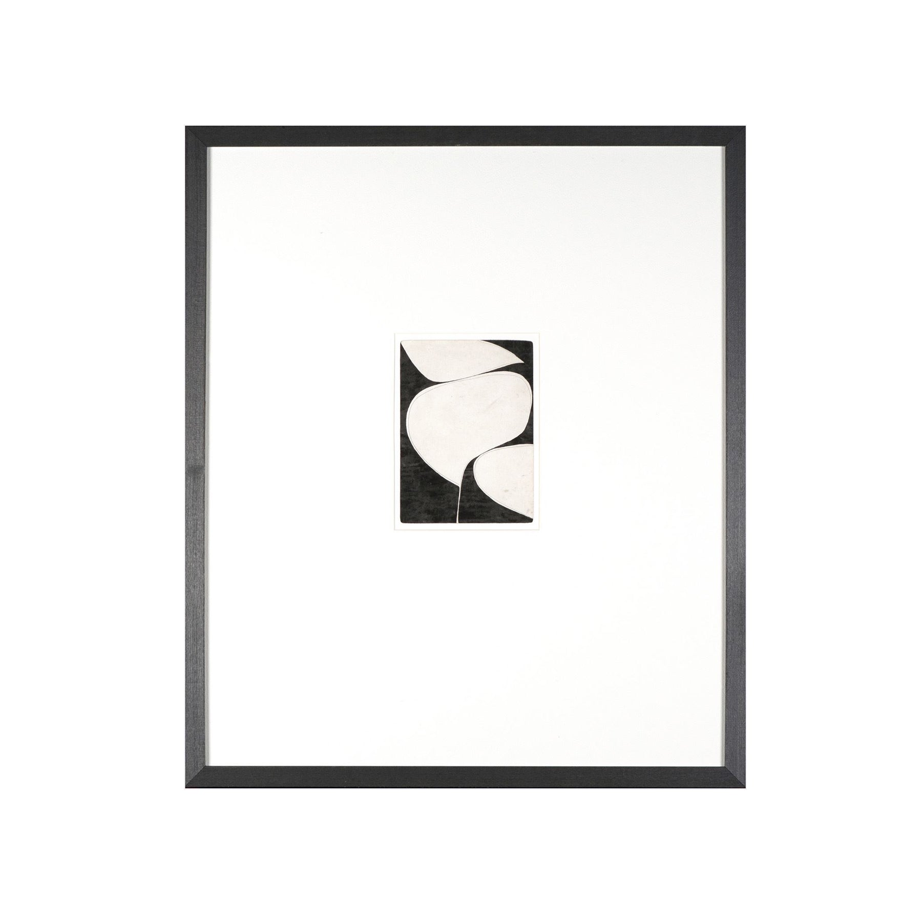 The shapely forms of these four contemporary, minimal compositions are well played out in graphic black and white. Each is framed with pebbled mattes and contrasting rustic charcoal frames.