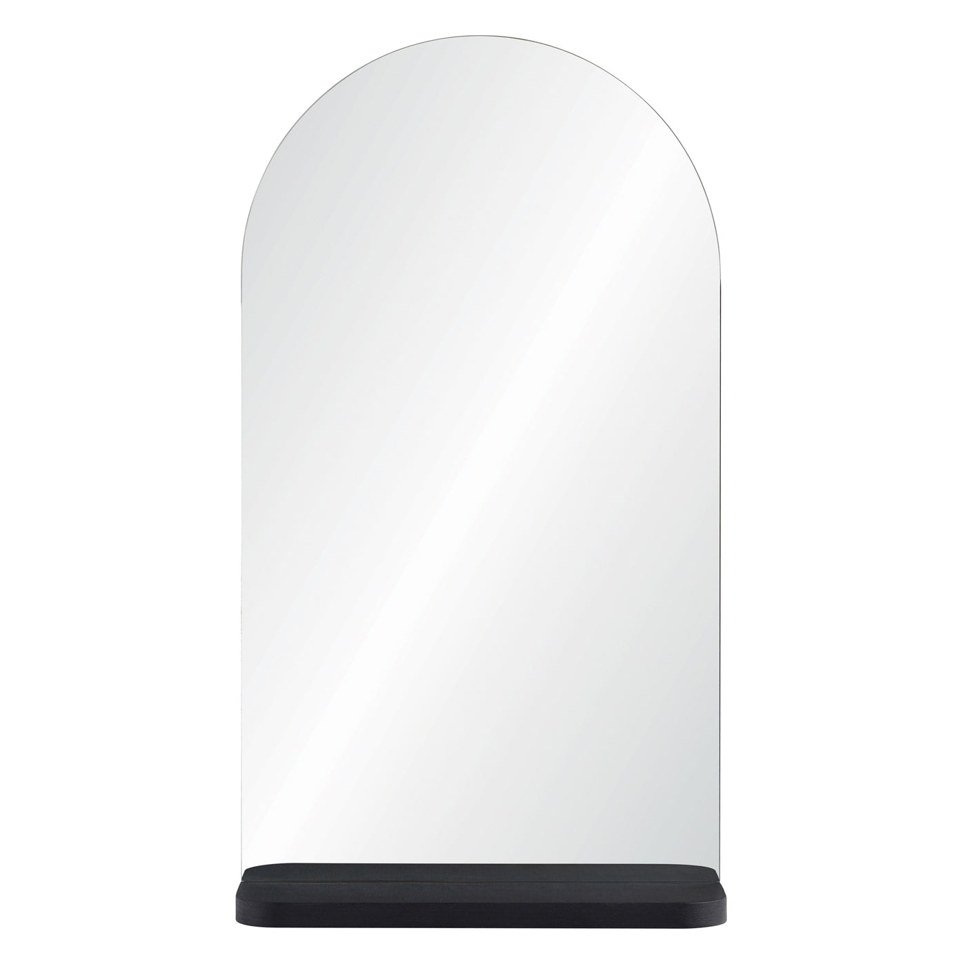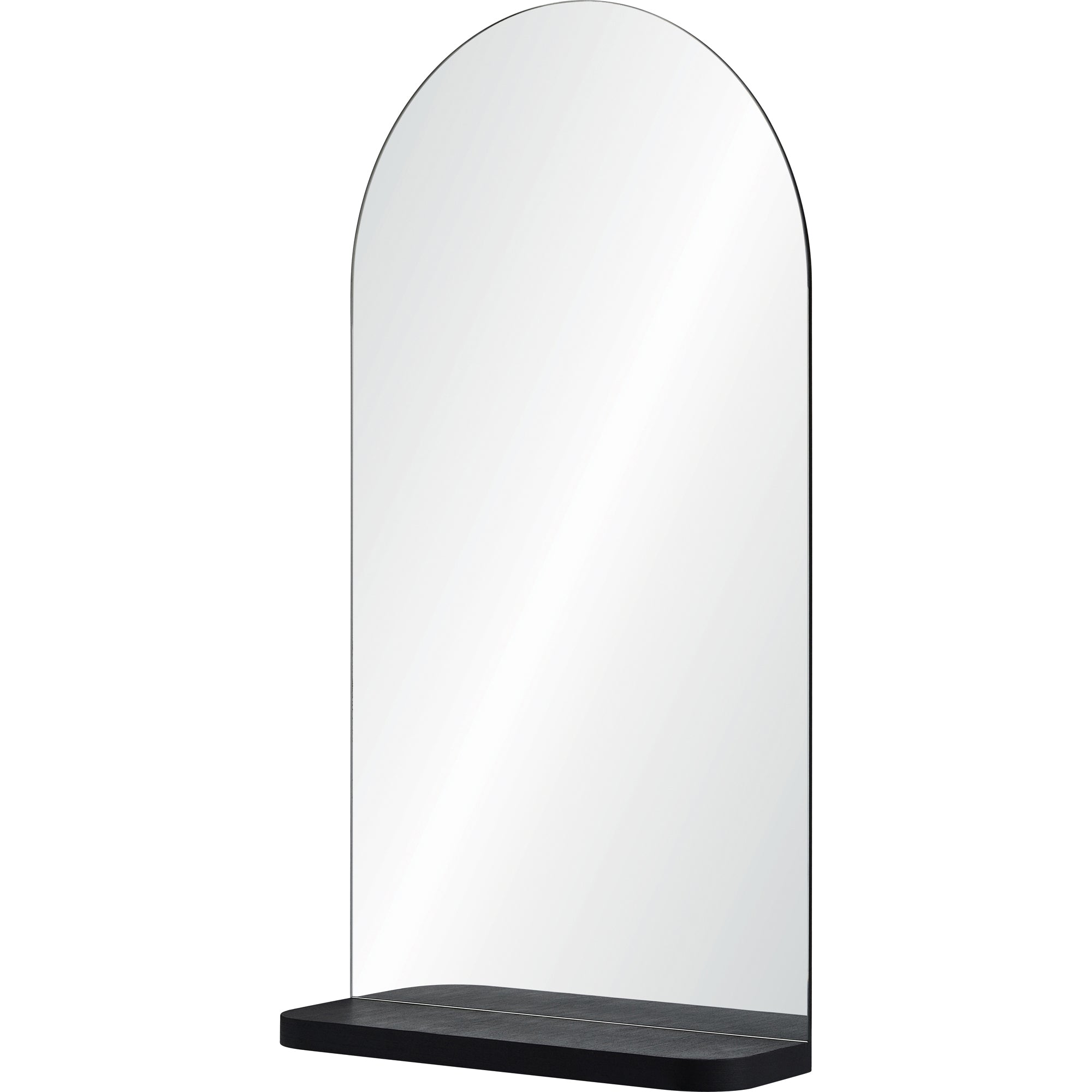 Organic influence takes center stage in this mirror design. Set in the minimalist entryway, it provides light and utility to the daily routine. The serene quality of the arching structure is elevated, while the shelf adds functional luxury.