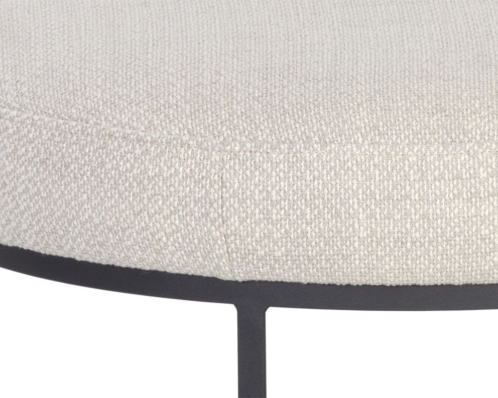 This round ottoman designed with modern elements will be the perfect additional seat or footrest in living and lounge spaces.