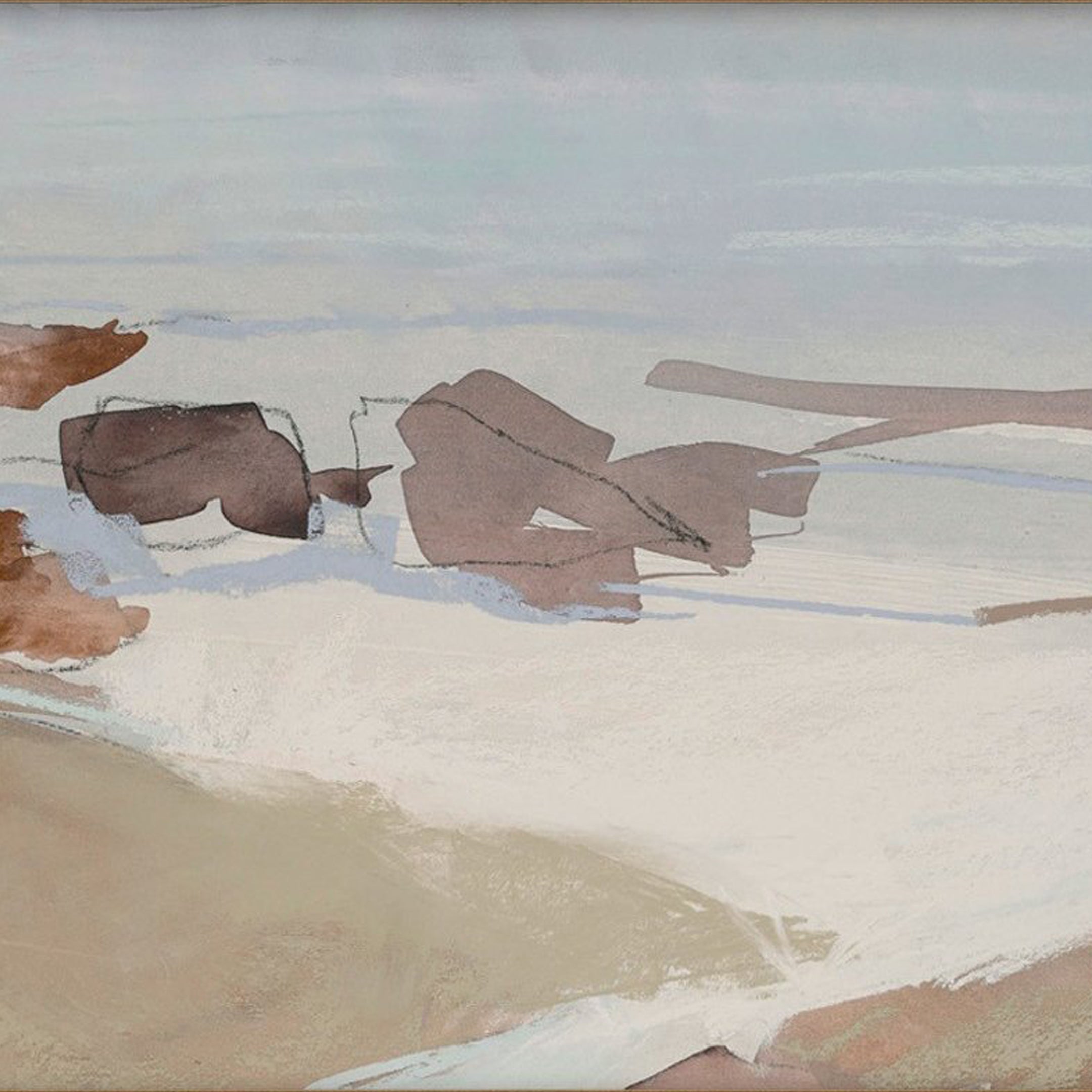 Saltspring Island I Framed print features a mixture of warm and cool earth tones that resemble East Coast landscapes in an abstract manner.