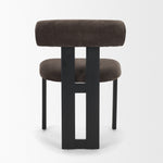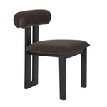 This dining chair brings bold contrast and sculptural form to the table, featuring a rolled backrest, double-beam detail, and tripod base in solid black rubberwood. Upholstered in durable charcoal chenille with recycled content, it combines elevated comfort, modern edge, and everyday performance.